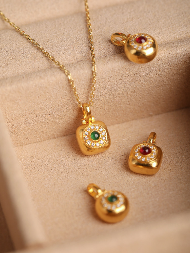 Золотая рубиновая инкрустация камня, открывающийся кулон, браслет, ожерелье, аксессуары, 24 карат, DIY
