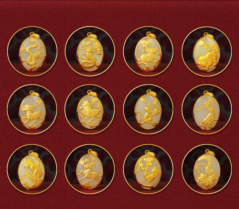 Золотая подвеска из нефрита, китайский гороскоп