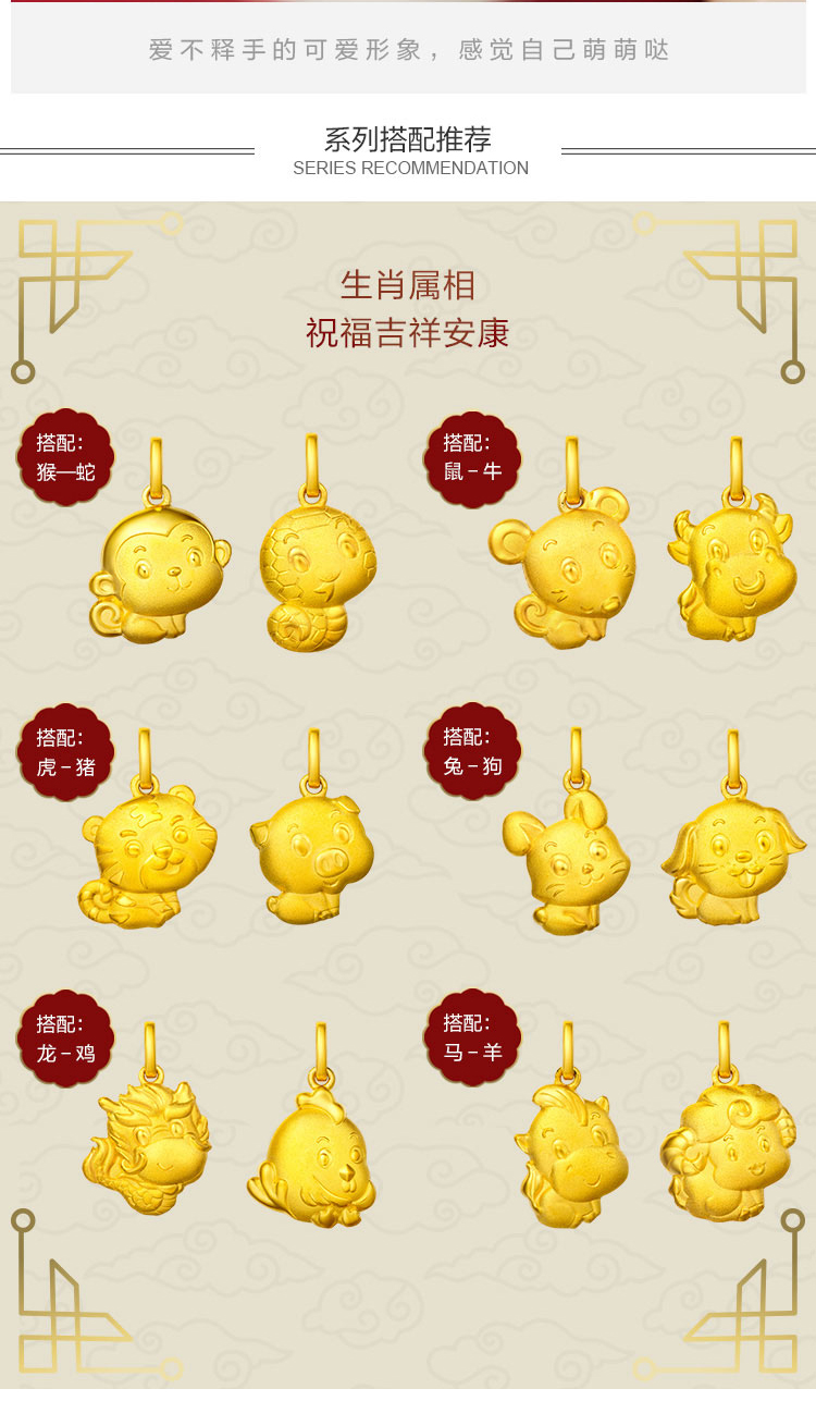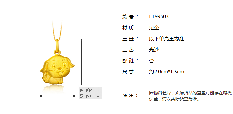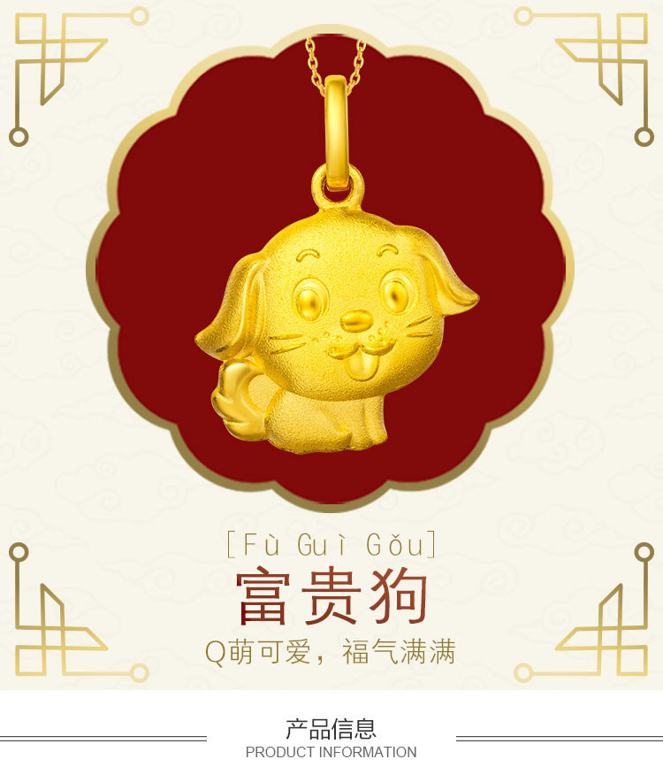 周大福 Ювелирные украшения для ювелирных изделий зодиака для собак ноги золотой золотой кулон Оценка F199503 Прекрасный выбор