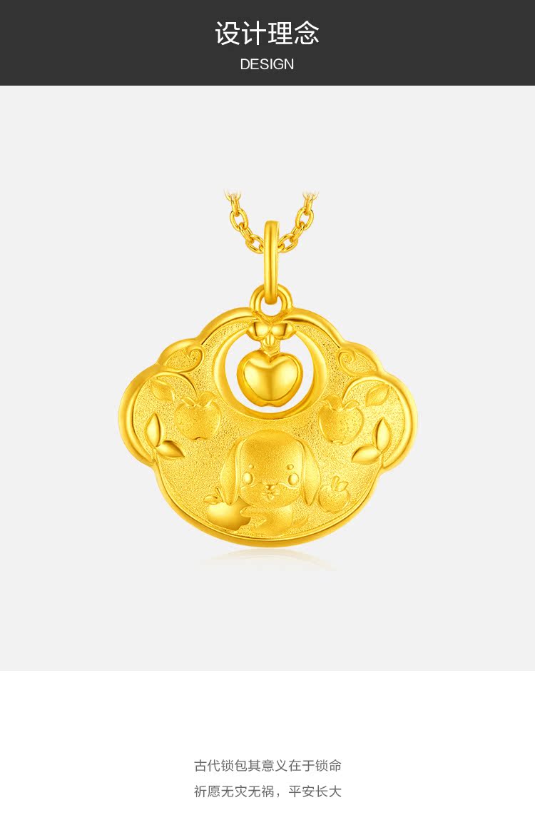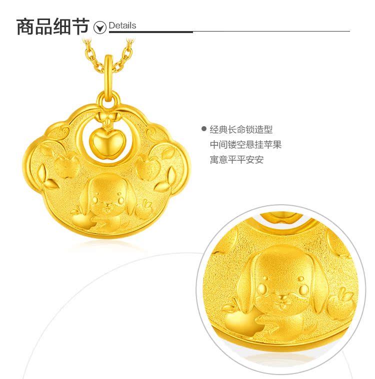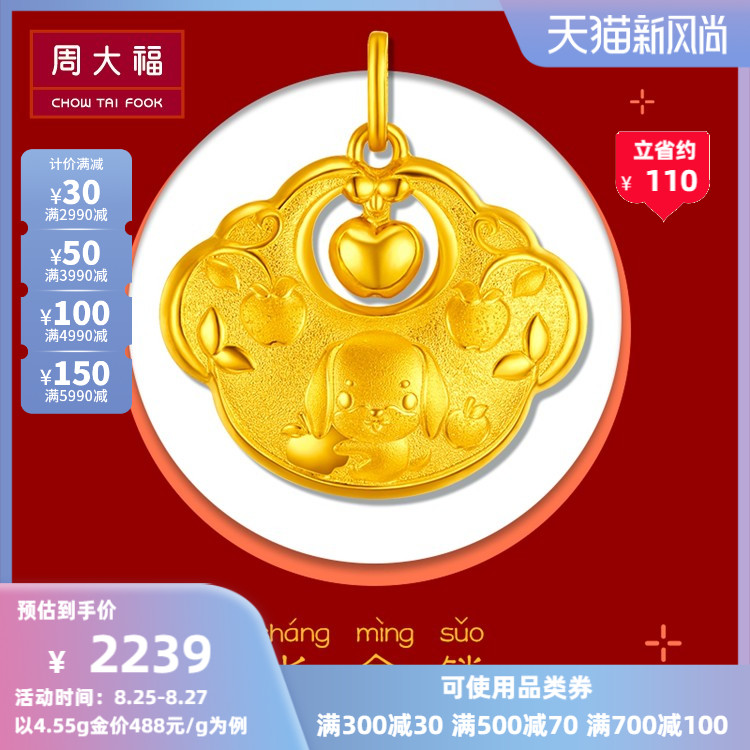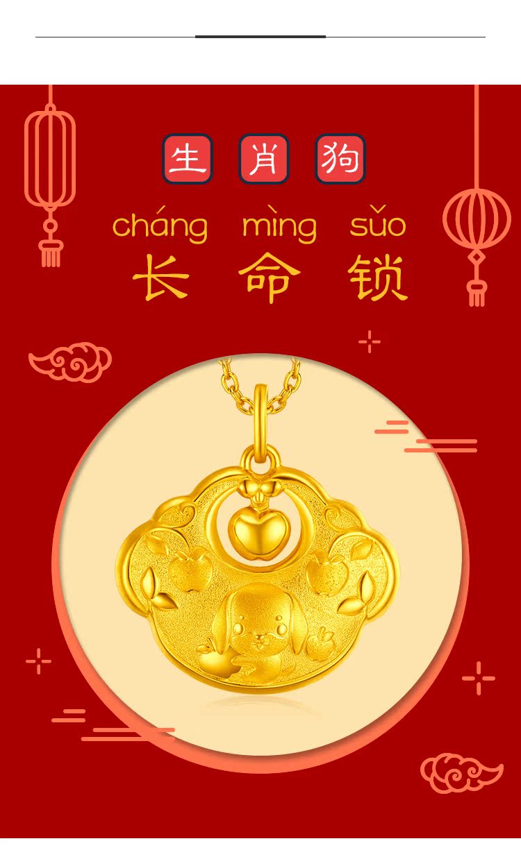 周大福 Защитный амулет, золотая подвеска, китайский гороскоп, замок долголетия