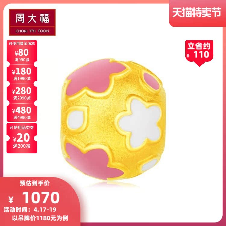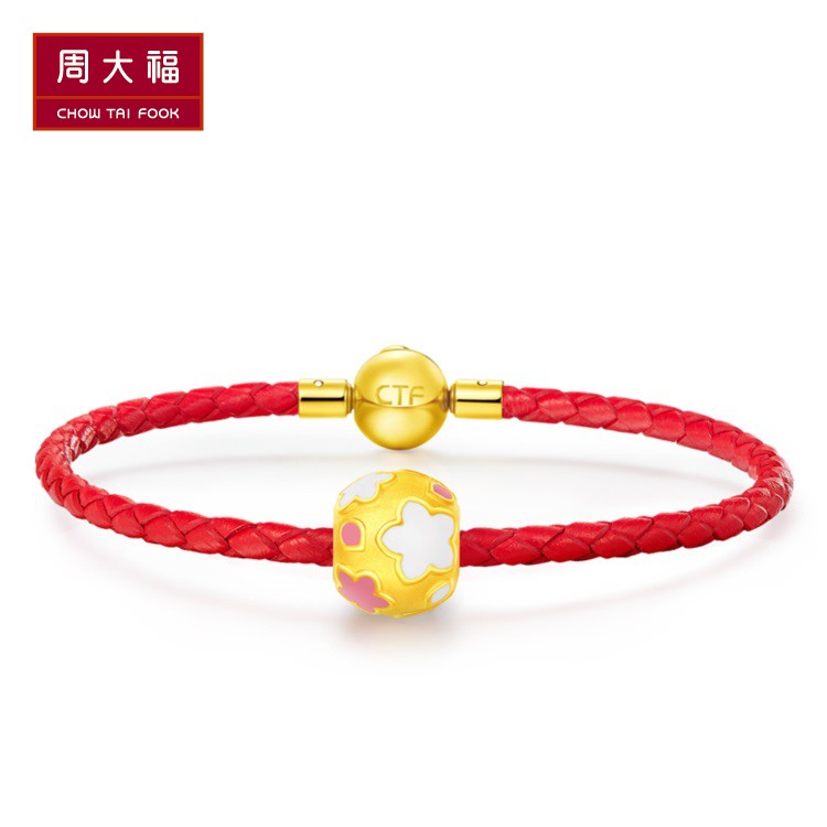 周大福 Браслет с одной бусиной, золотая эмаль, подвеска, 3D, модель R20748