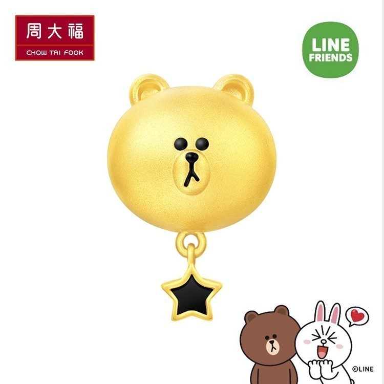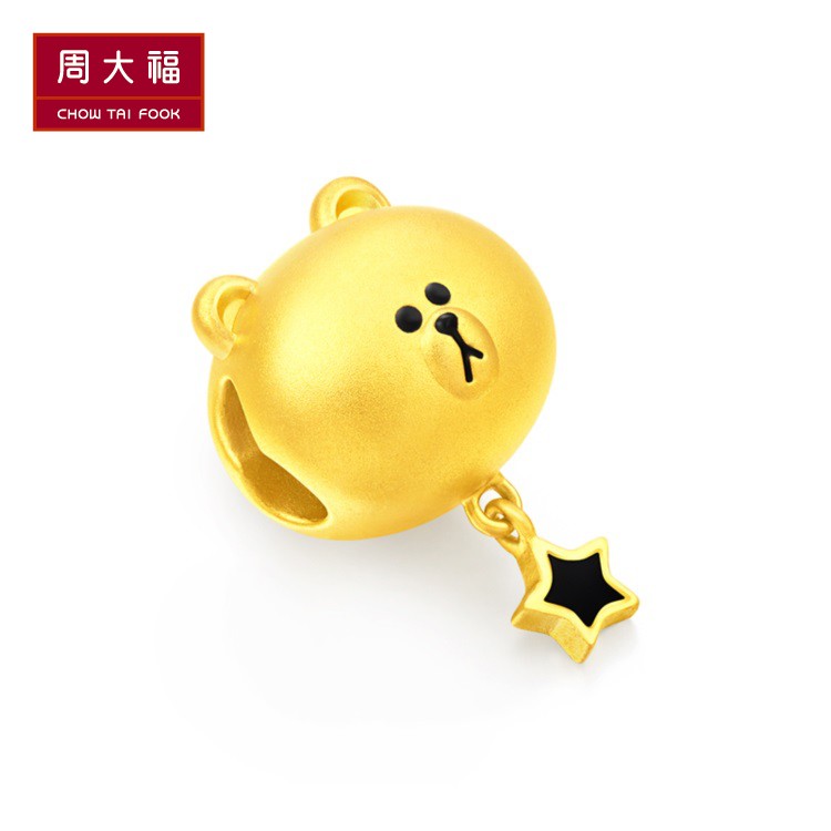周大福 IP шарнир LINE FRIENDS series золотой кулон с бусинами-переводом в виде бурого медведя