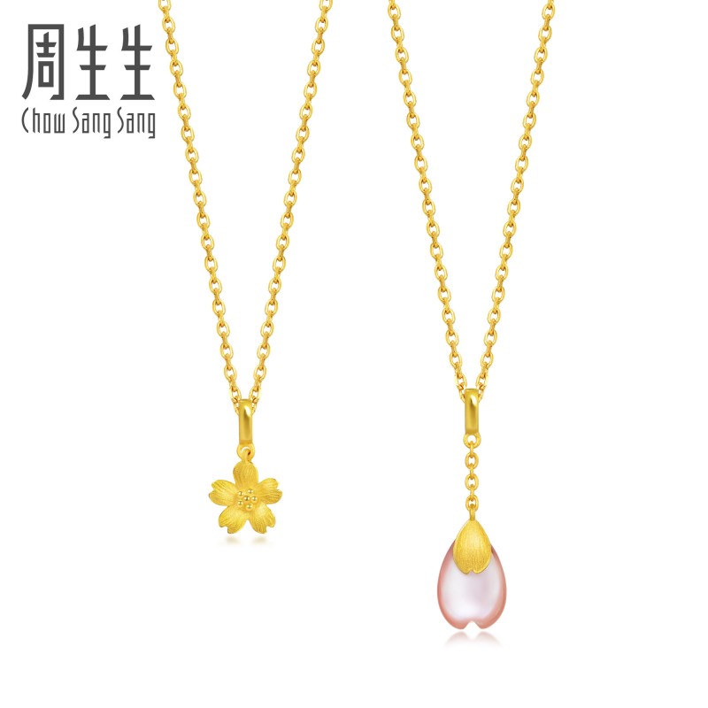 周生生 Daily Luxe Fritillaria's Cherry Flower Pendation Blossom Gold Следуйте 90321P