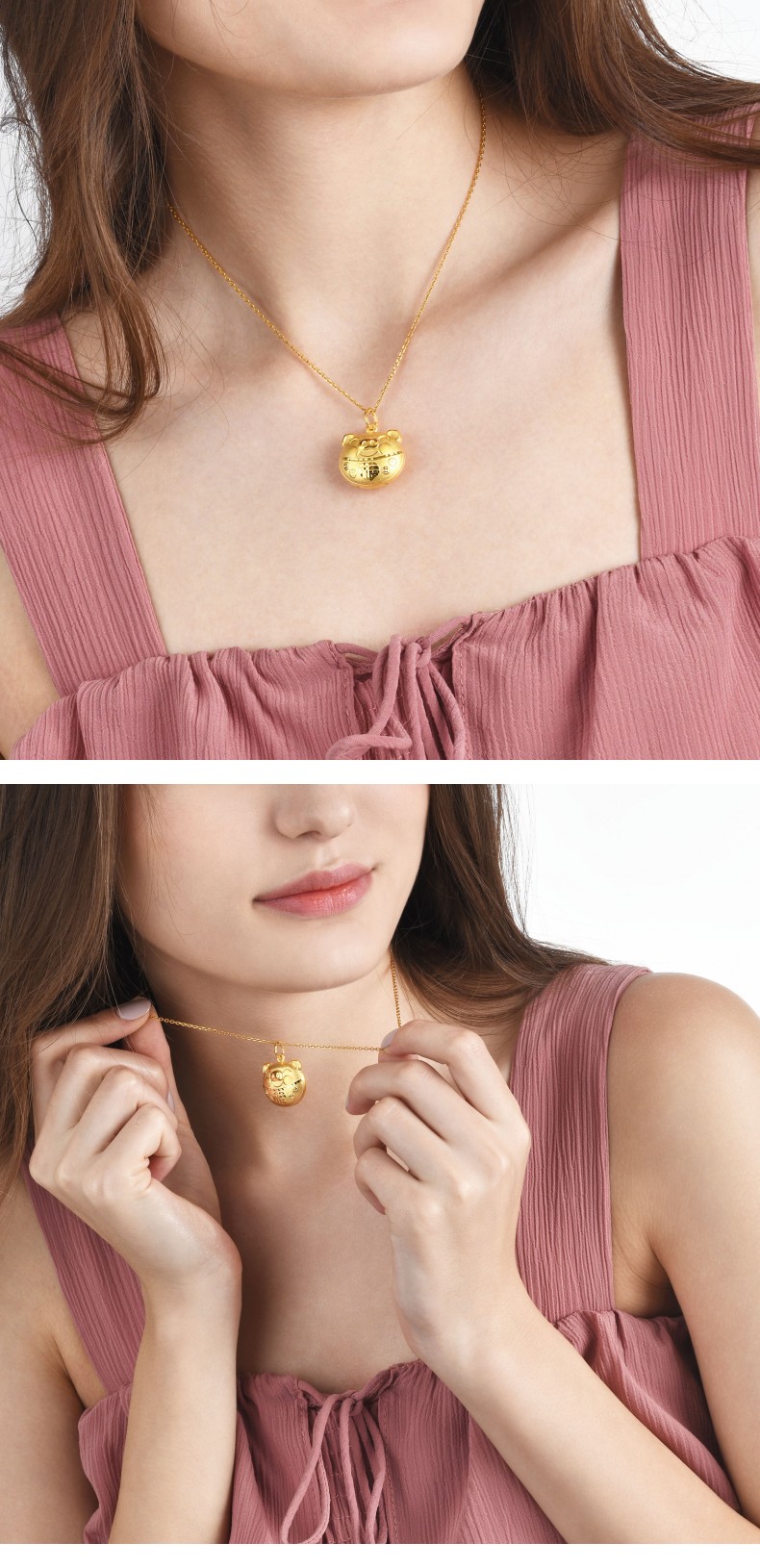 周生生 Золотая подвеска, ожерелье, замок долголетия