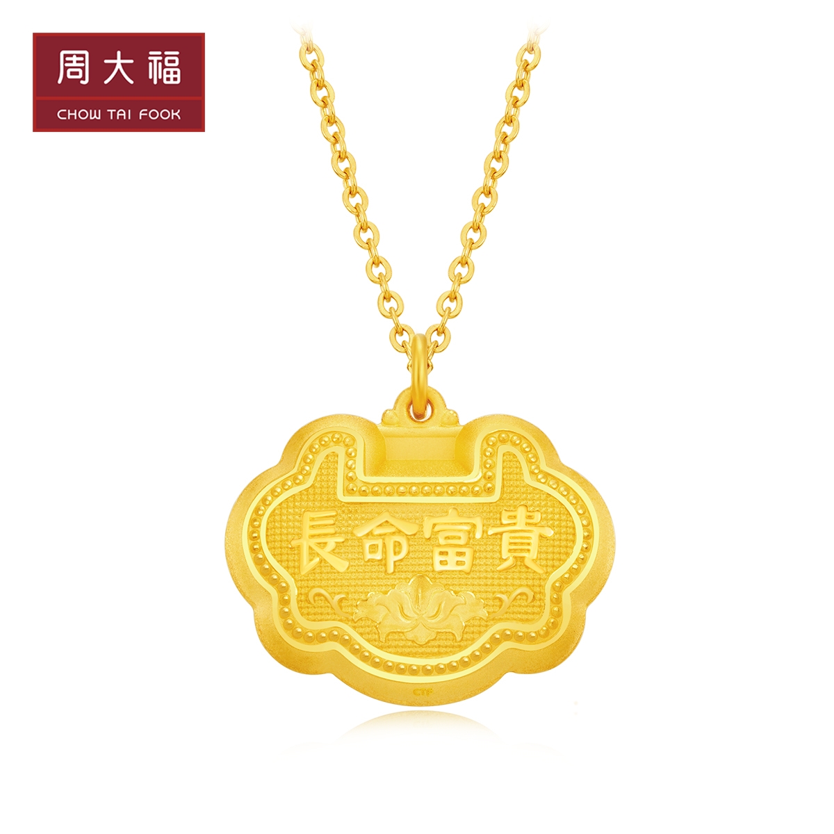 周大福 Ювелирные украшения с длинными и богатыми мешками с полным золотым подвеской F219797 Подарки
