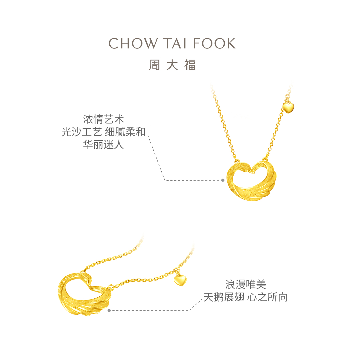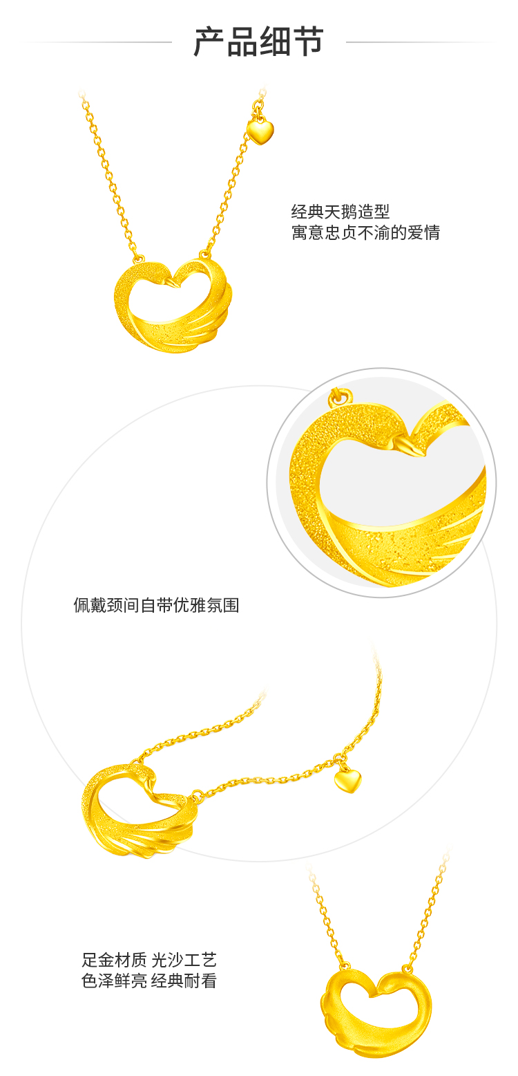 周大福 Лебедь в форме сердца, золотое ожерелье, золотая цепочка
