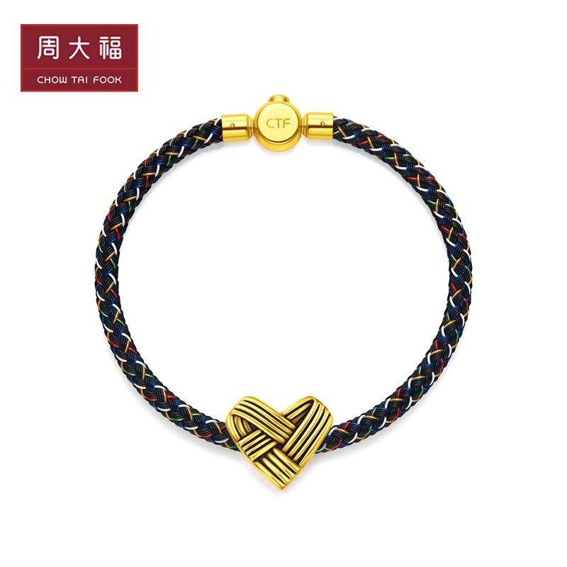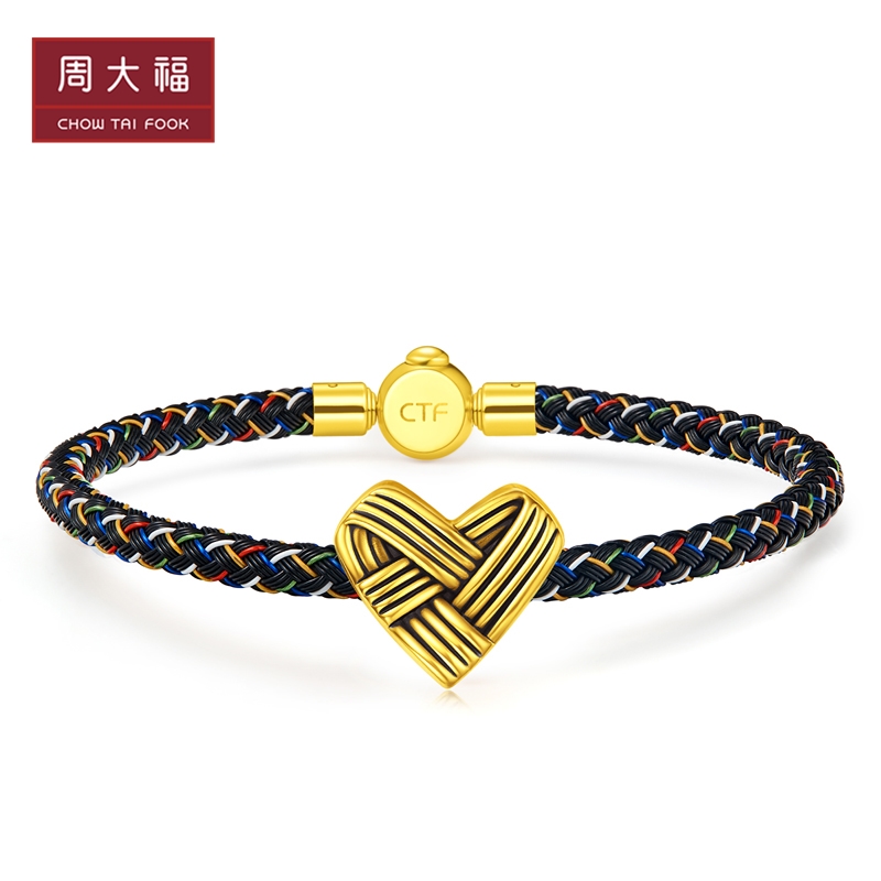 周大福 Плетеная золотая подвеска, браслет с одной бусиной