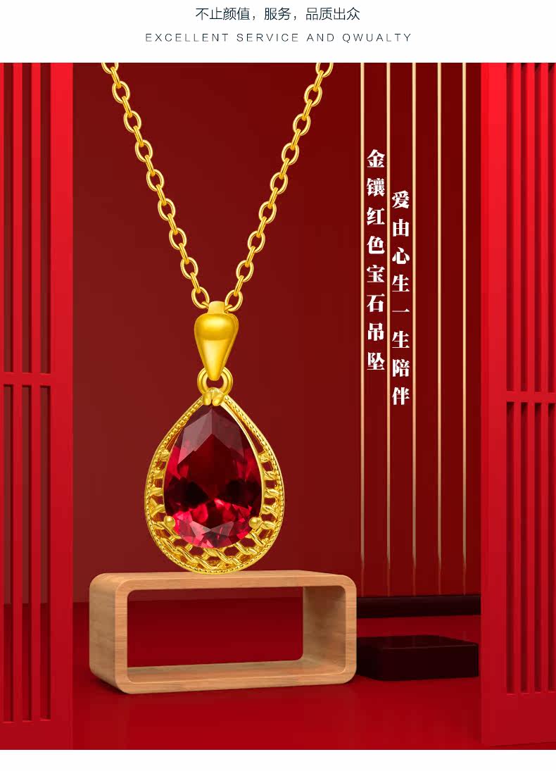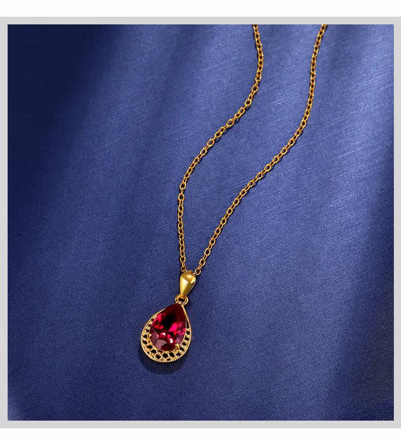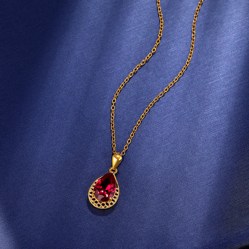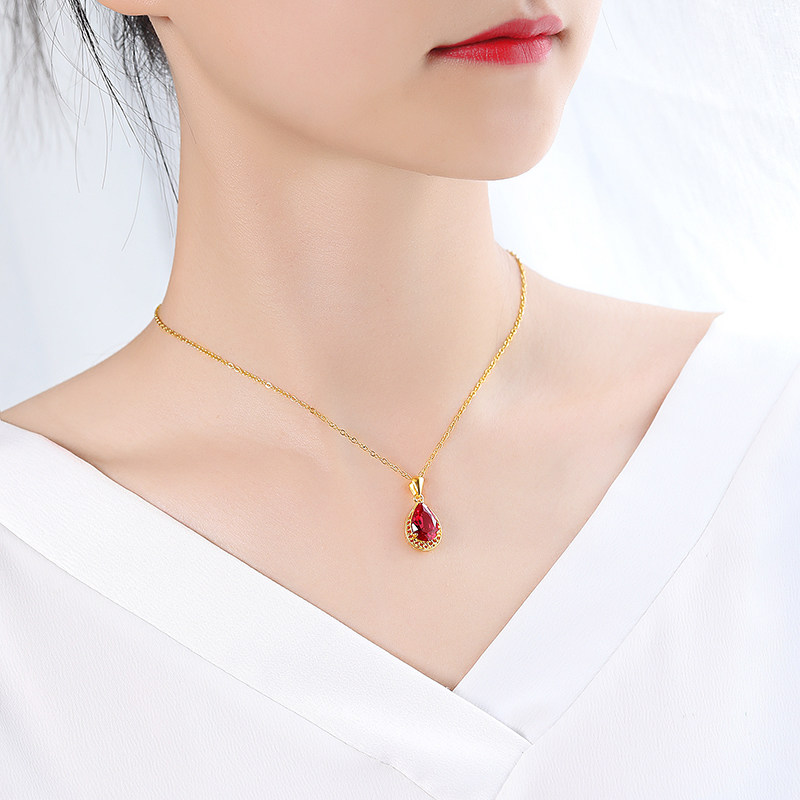 Золотое ожерелье, золотая рубиновая инкрустация камня, этническая подвеска в форме капли для матери, женский стиль, этнический стиль