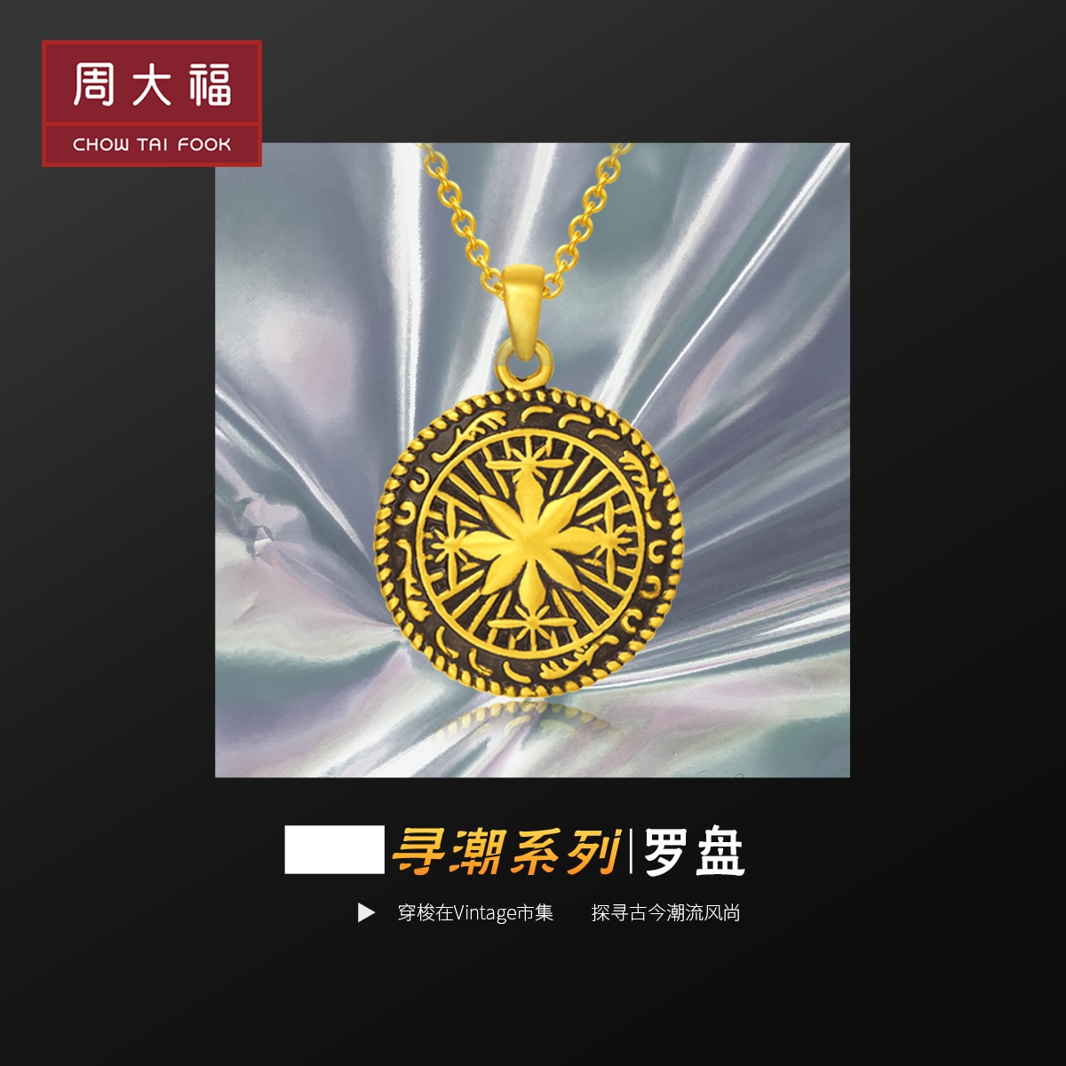 周大福 Поиск серии электрических черных золотых навигационных навигации Compass, Gold Gold Pendant Eor156 Выбор подарков
