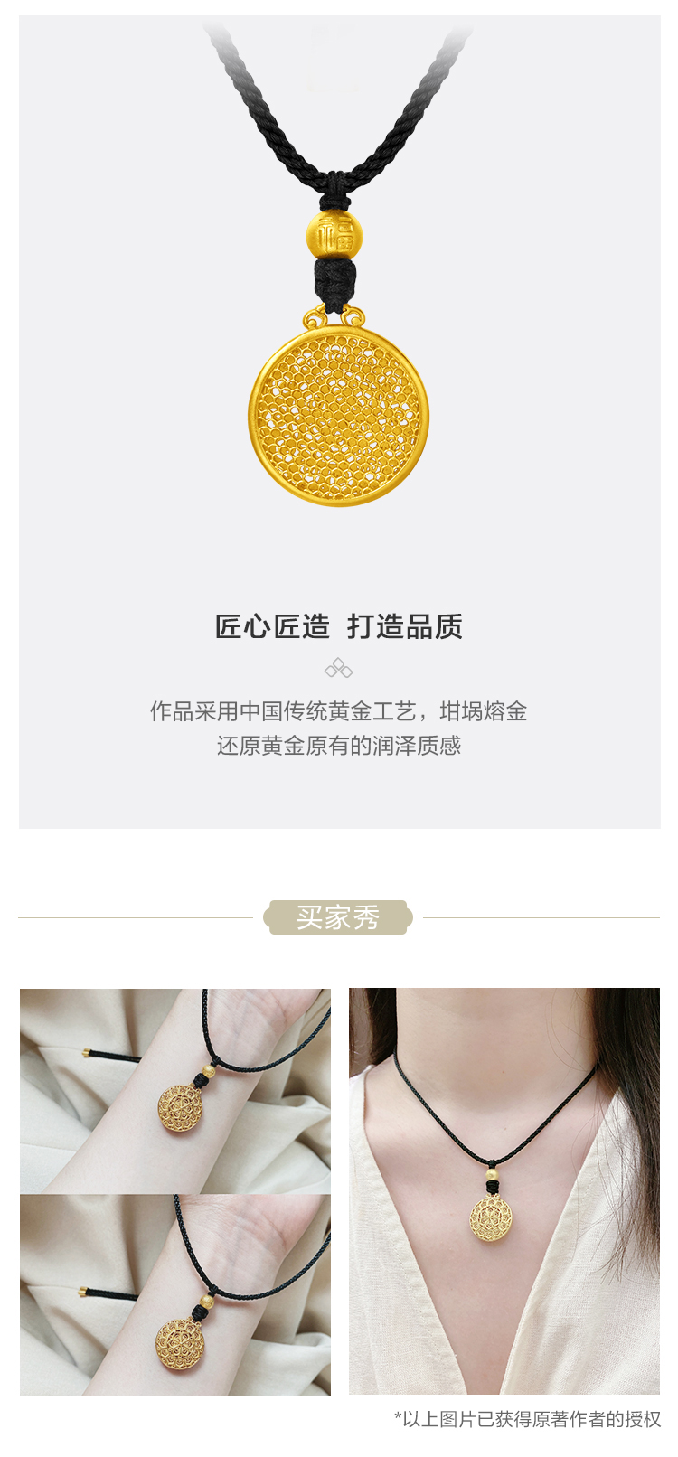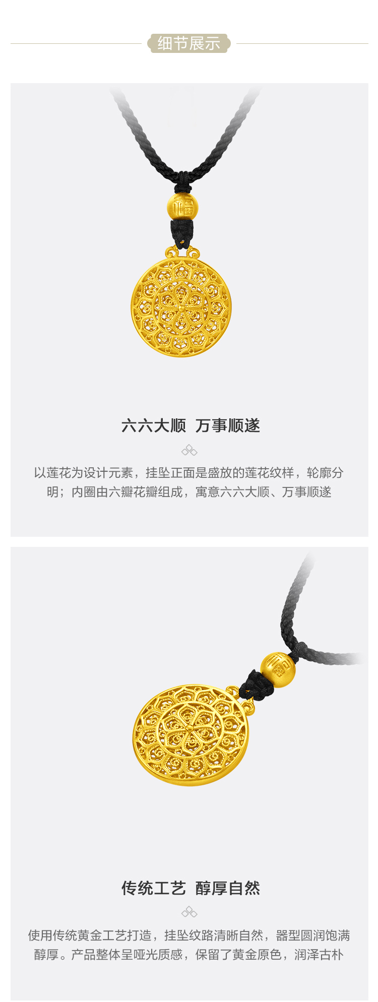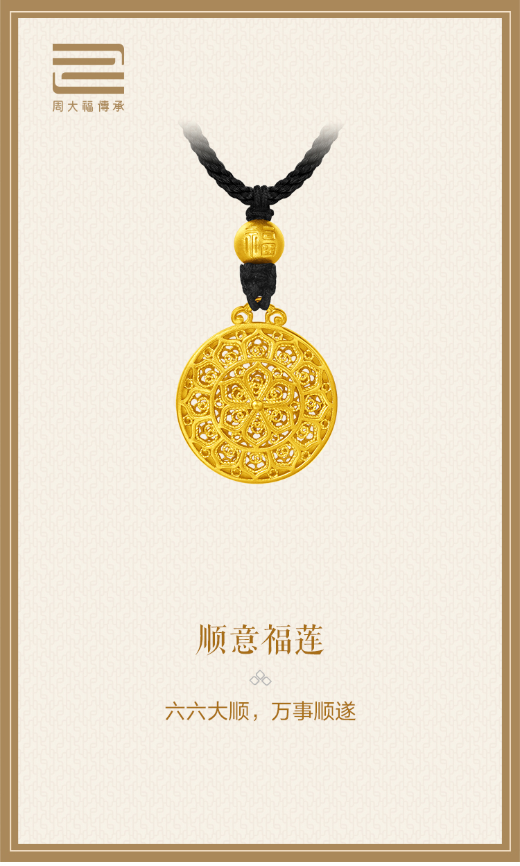 周大福 Наследство Shunyi Fulian Gold Pendant (большая версия) Оценка F225252