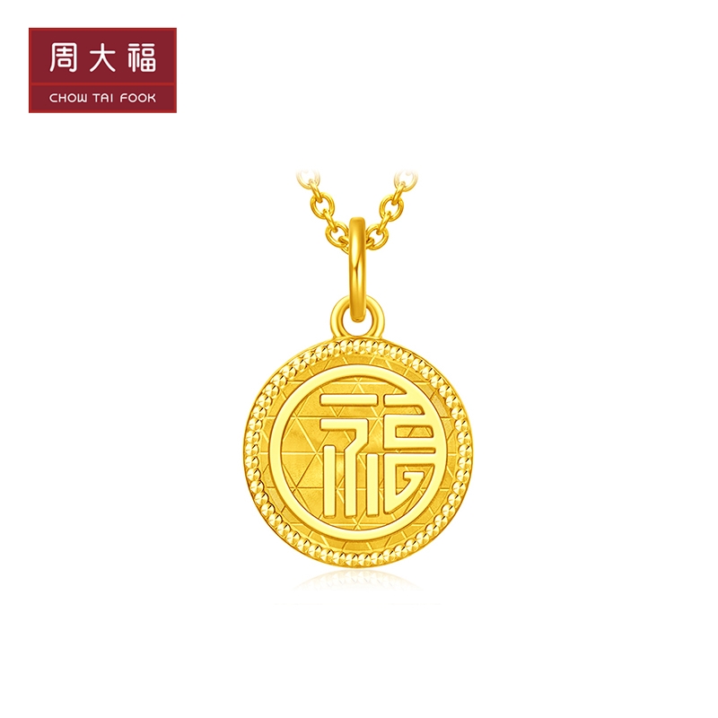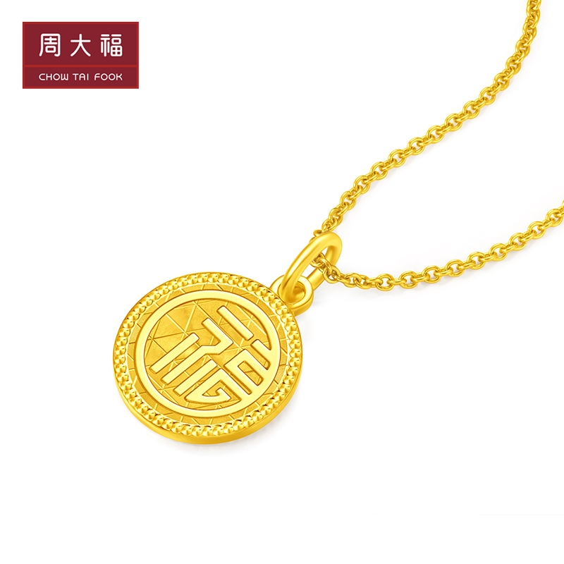 Новый Chow Tai Fook Jewelry Jewelry Jewelry Jewelry Hearling Характер круглый золотой золотой золотой подвеска EOF453