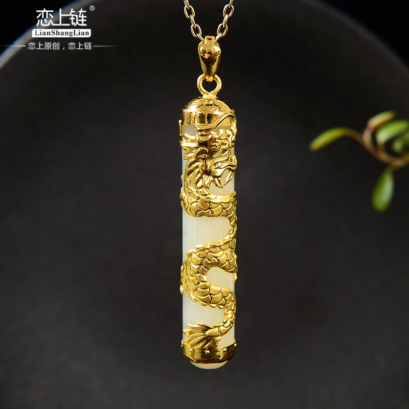 Золотая цепочка, подвеска подходит для мужчин и женщин, золотое украшение в форме дракона из нефрита, ожерелье, женский стиль