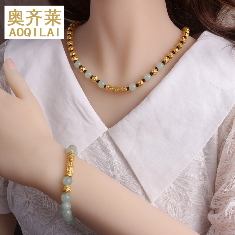 Золотое ожерелье из жемчуга, натуральный нефрит, модная реплика, цепочка до ключиц, легкий роскошный стиль