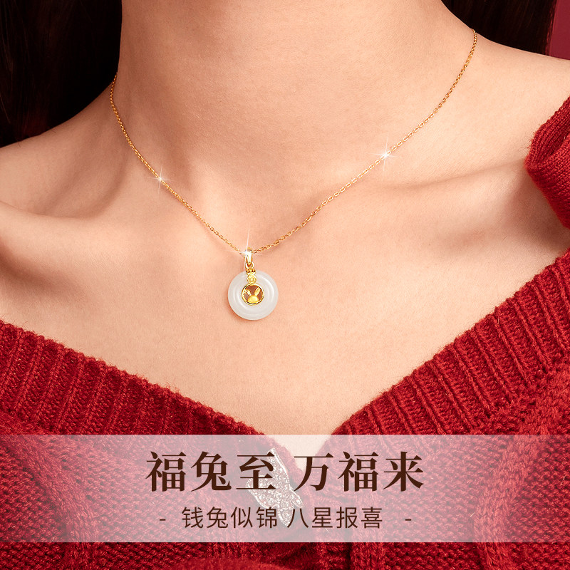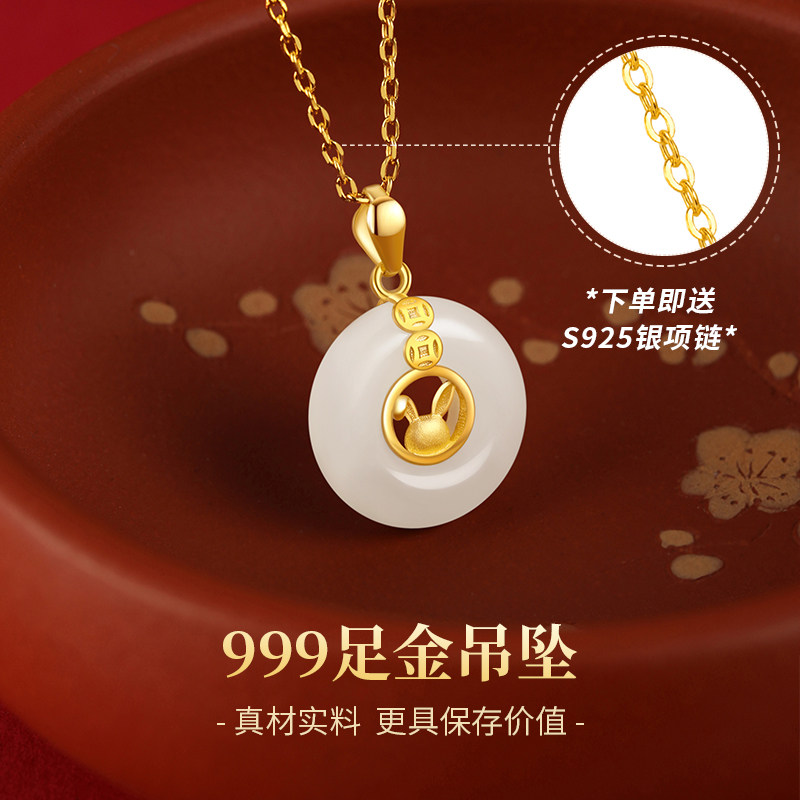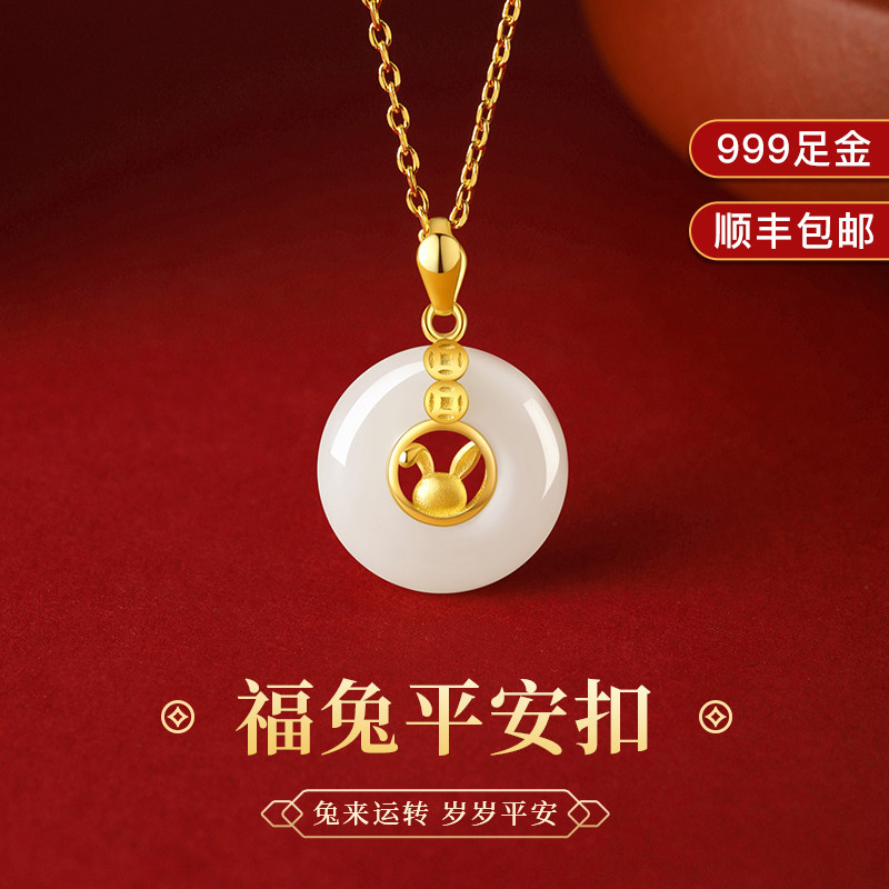 Золотой кролик из нефрита, ожерелье, защитный амулет, пряжка, подвеска, подарок на день рождения