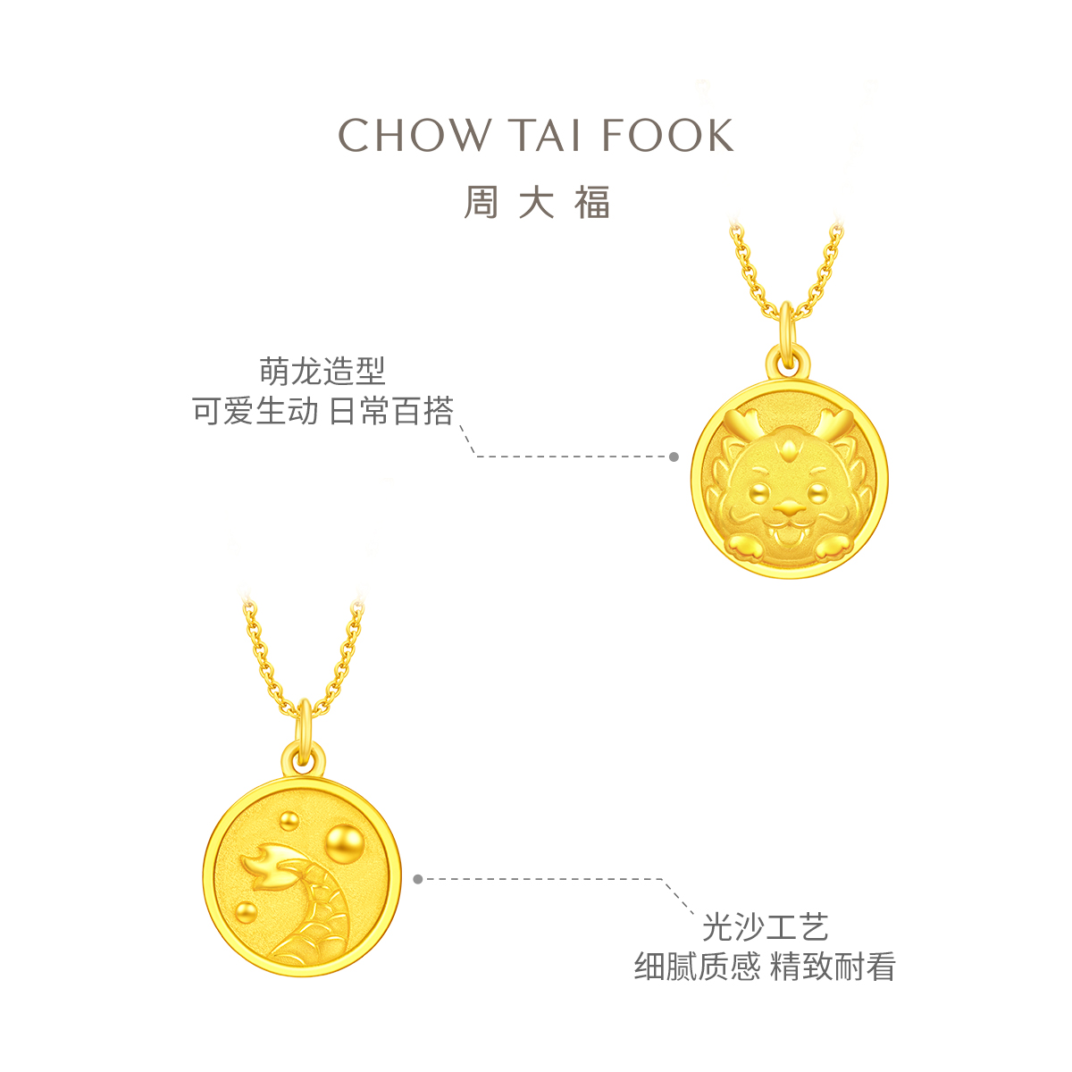 周大福 Дракон, молодой зодиак, милый свинг -хвост Дракон золотой кулон, ценообразование EOF1087