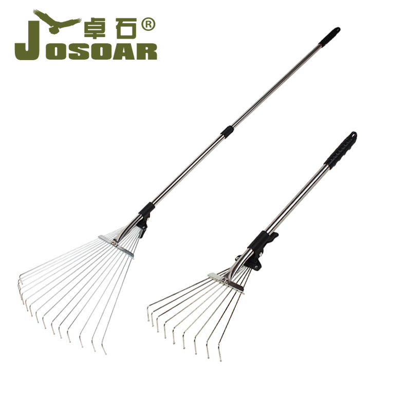 Ручка из нержавеющей стали Телескопическая стальная проволока Грабные грабли газон -сад сад мертвые листья санитария грабли садово сельскохозяйственное инструмент