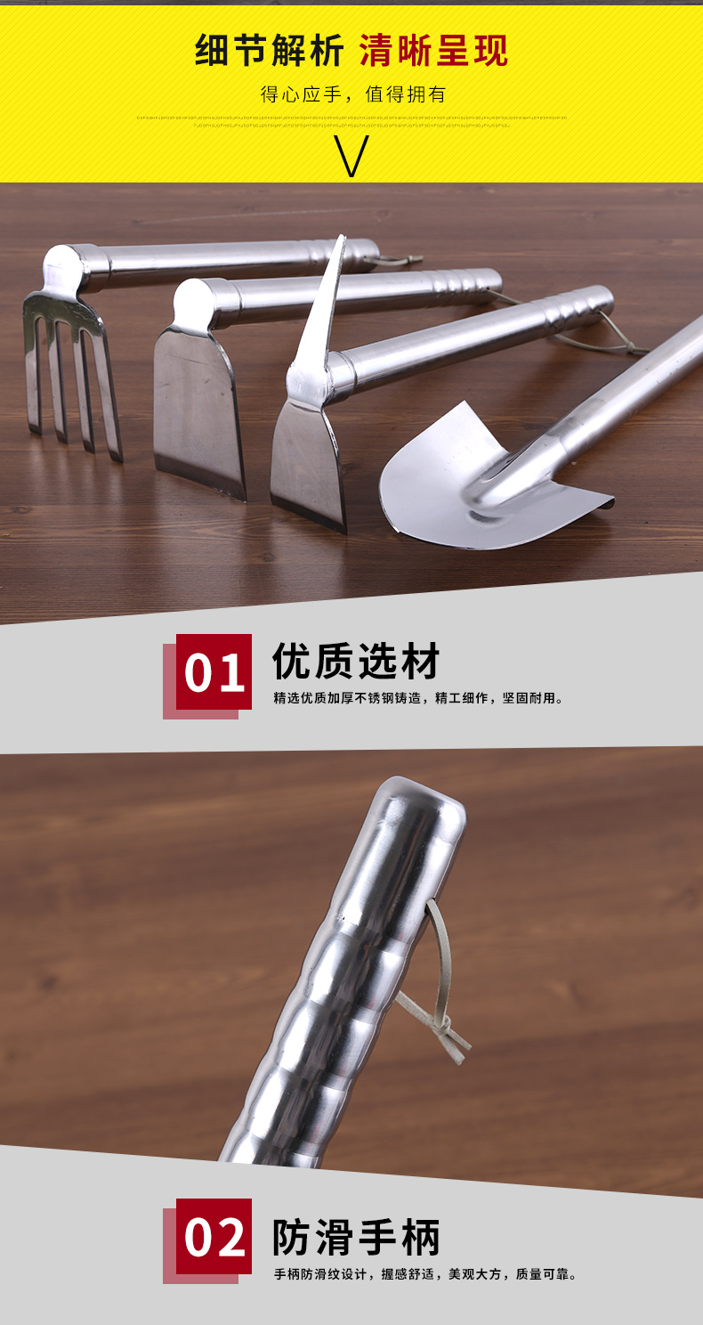 Садовые инструменты из нержавеющей стали Небольшой мотыга, иностранная наджа, ферма, цветок овощных цветов, копание почвы, прополки