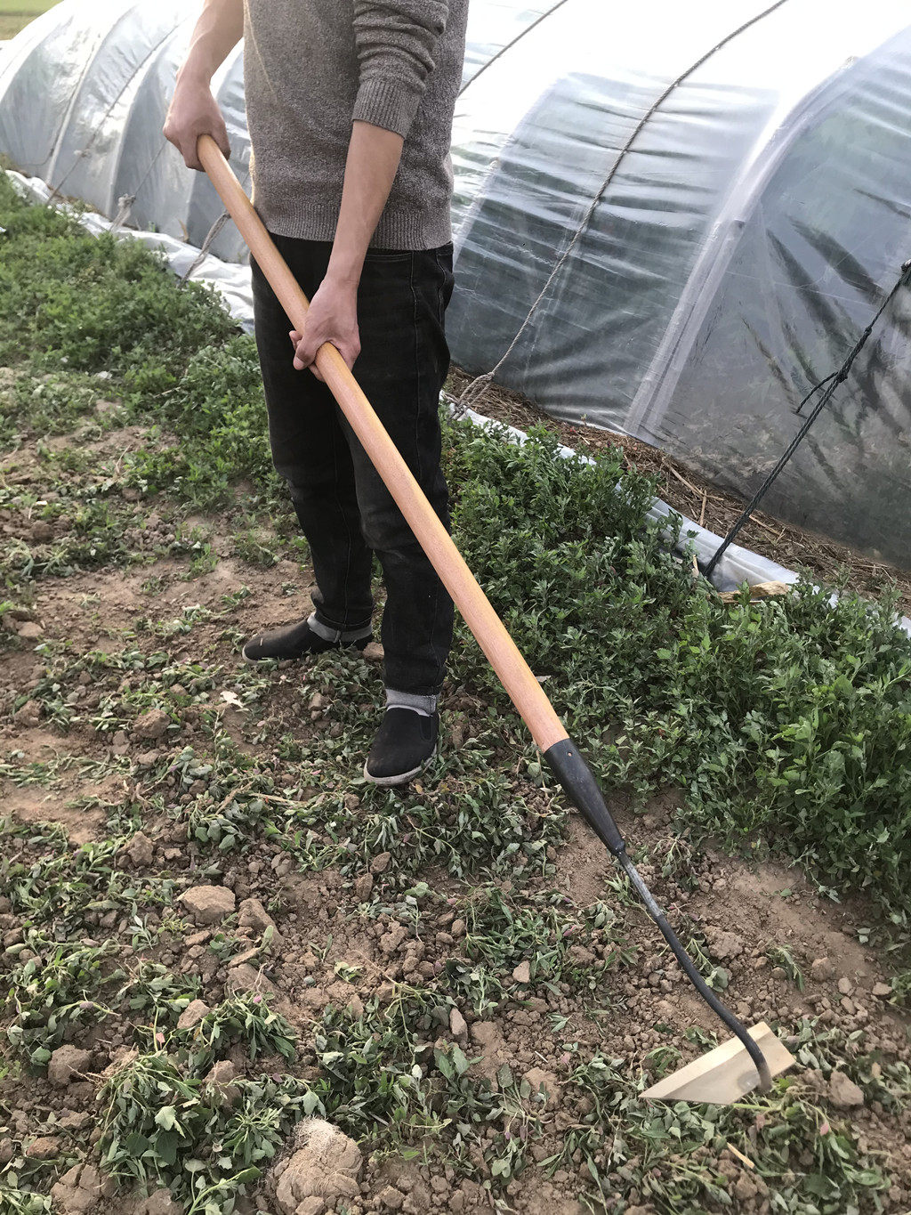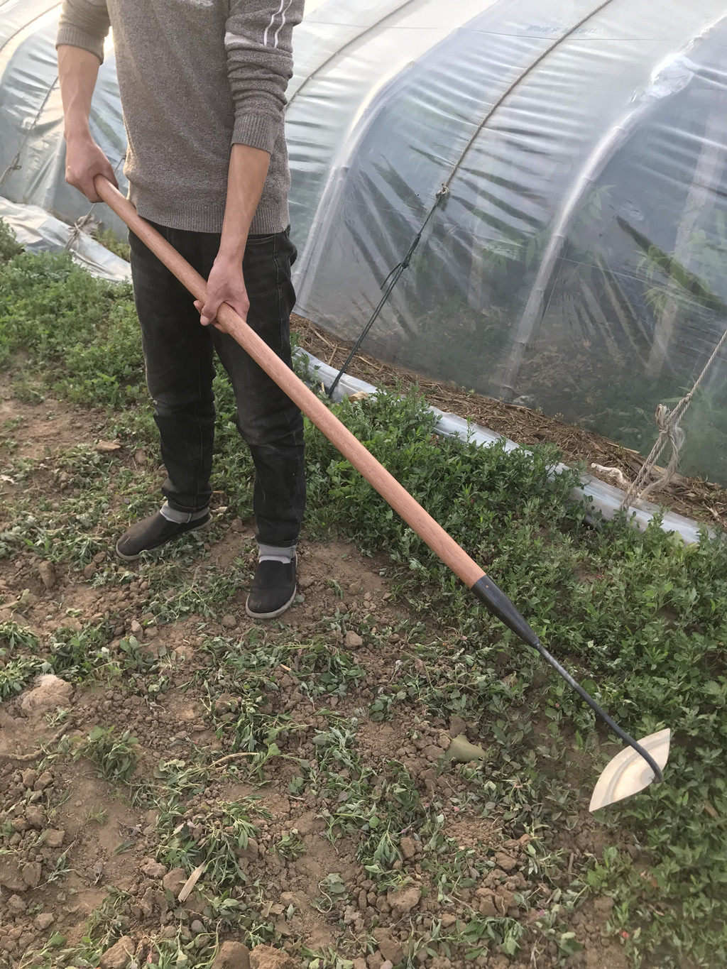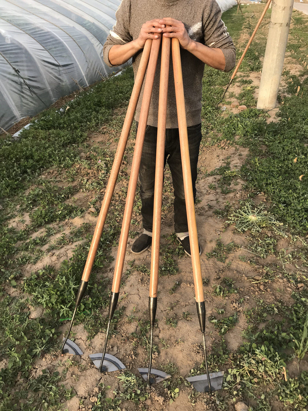 Большая мотыга, трава лопата, длинная ручка, марганцевая сталь, открытый лезвие зеленый садовый артефакт, старая модная полая утечка