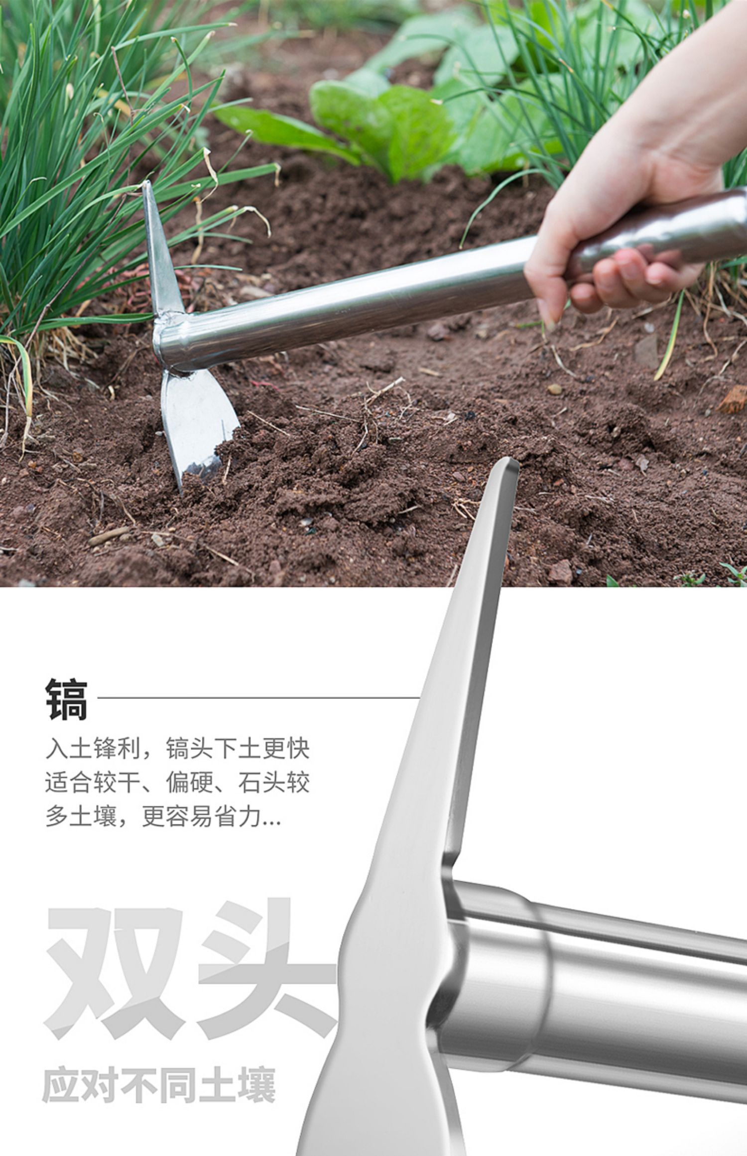 Наружные сельскохозяйственные инструменты мотыга все -стальные бамбуковые побеги Посадка овощей и цветов, густое мотыга, сельскохозяйственные грабли с двумя