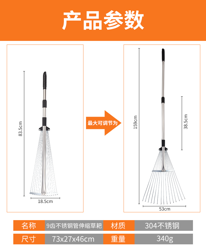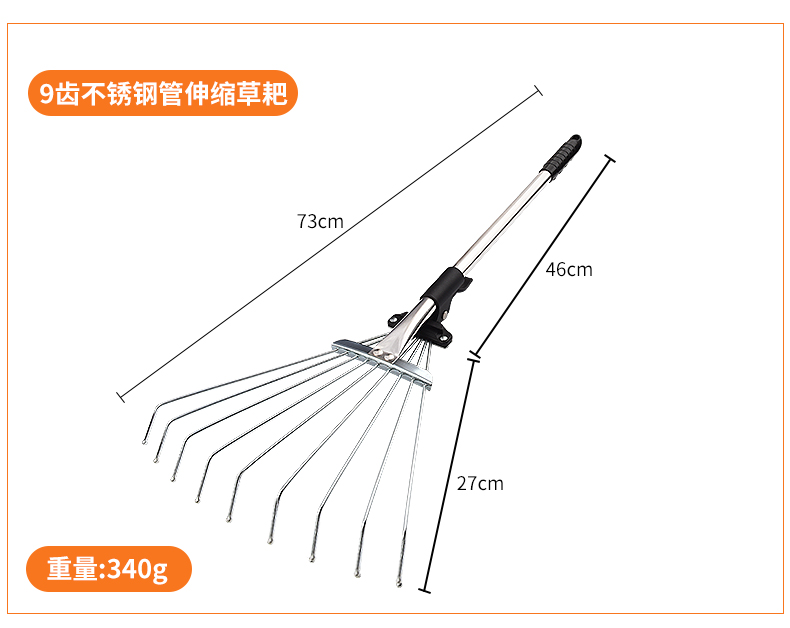 | Цвет: | 9 Трубная трава с нержавеющей стали зубной стали, 15 зубных труб из нержавеющей стали телескопические грабли травы |