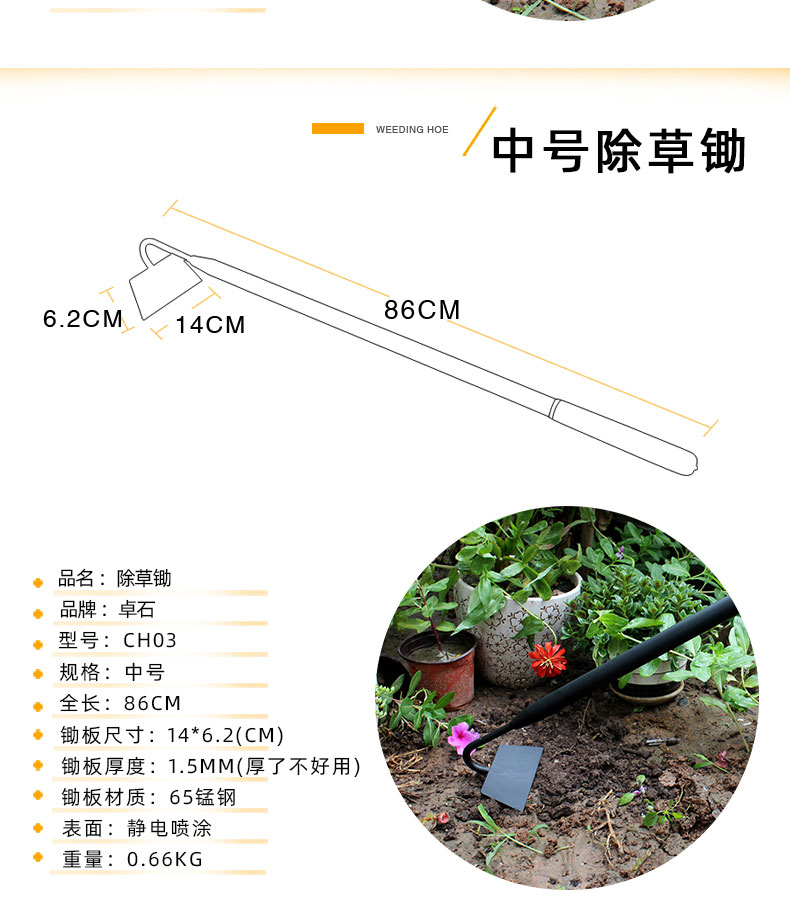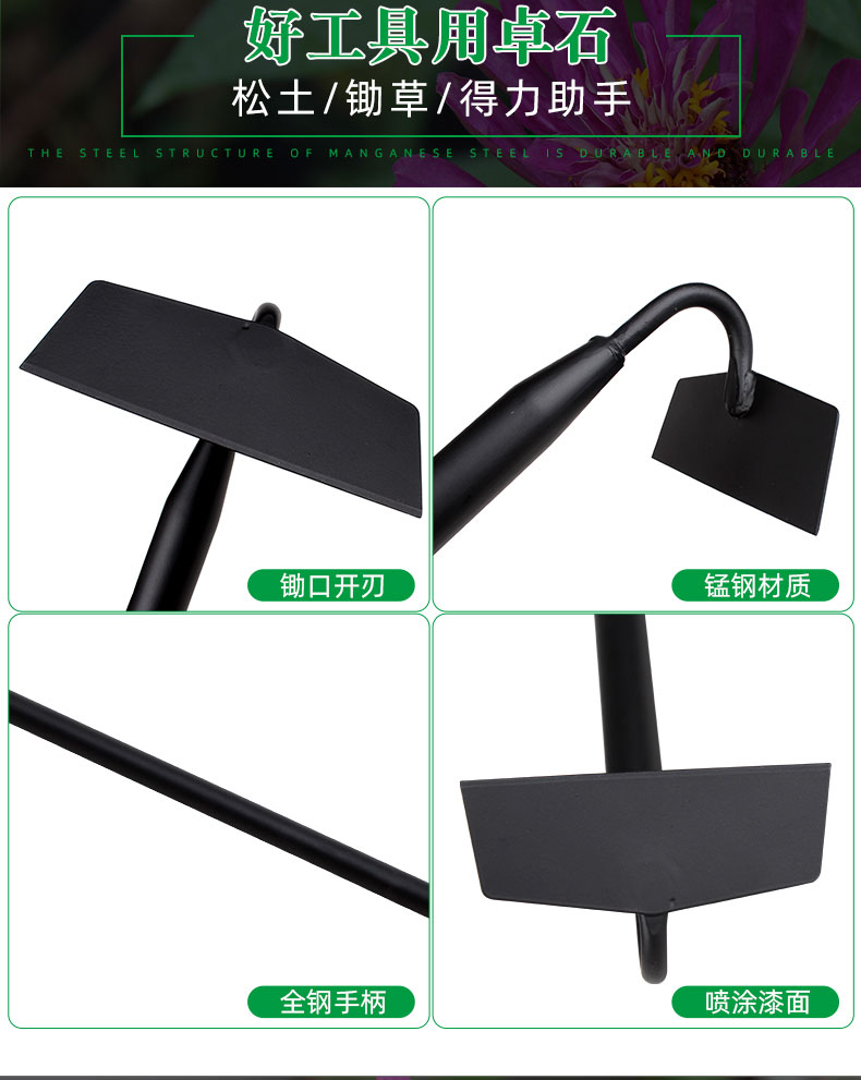 Марганцевая стальная мотыга Специальный артефакт Поверните землю, ослабляющий почву, срезая траву Небольшие сельскохозяйственные инструменты Домохозяйства, копание