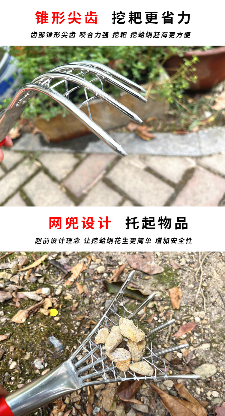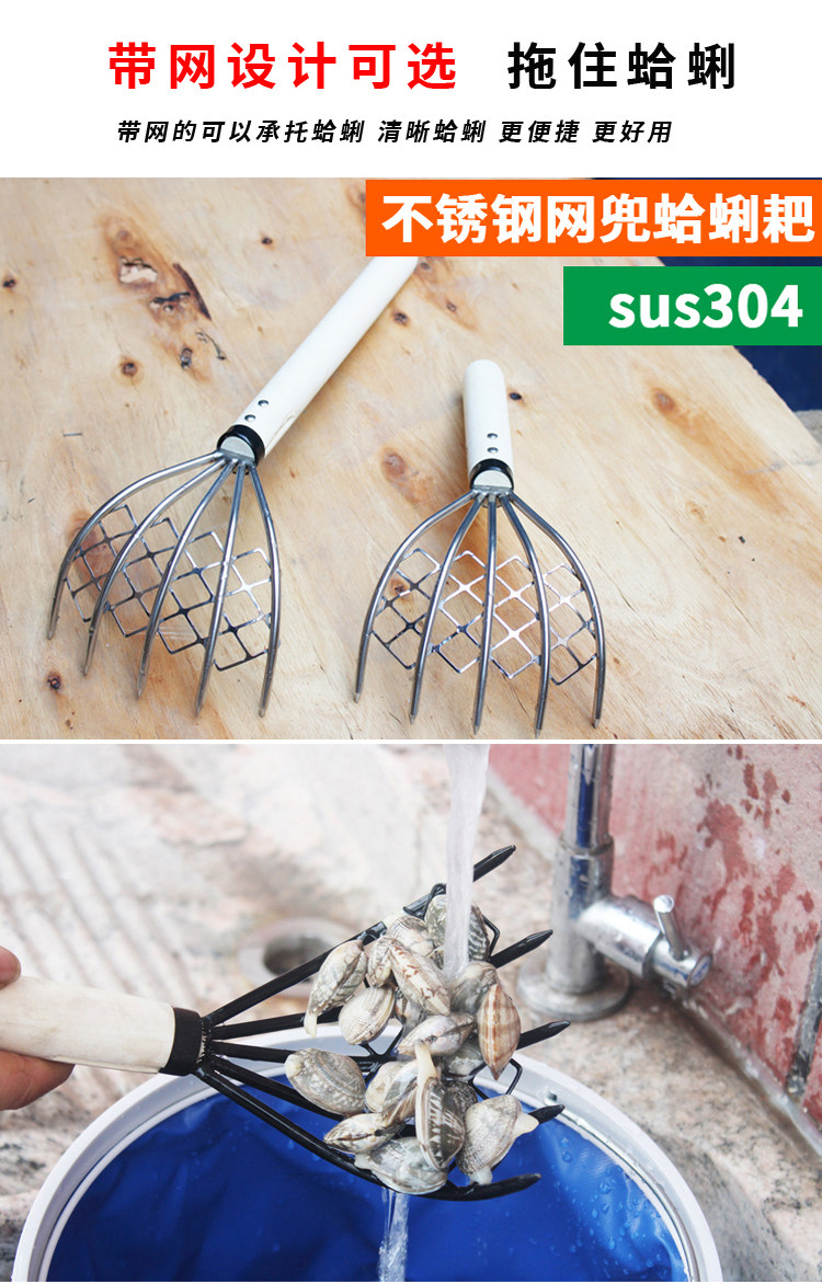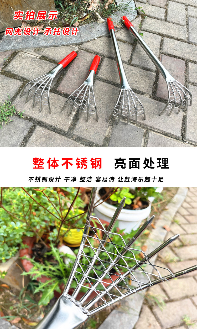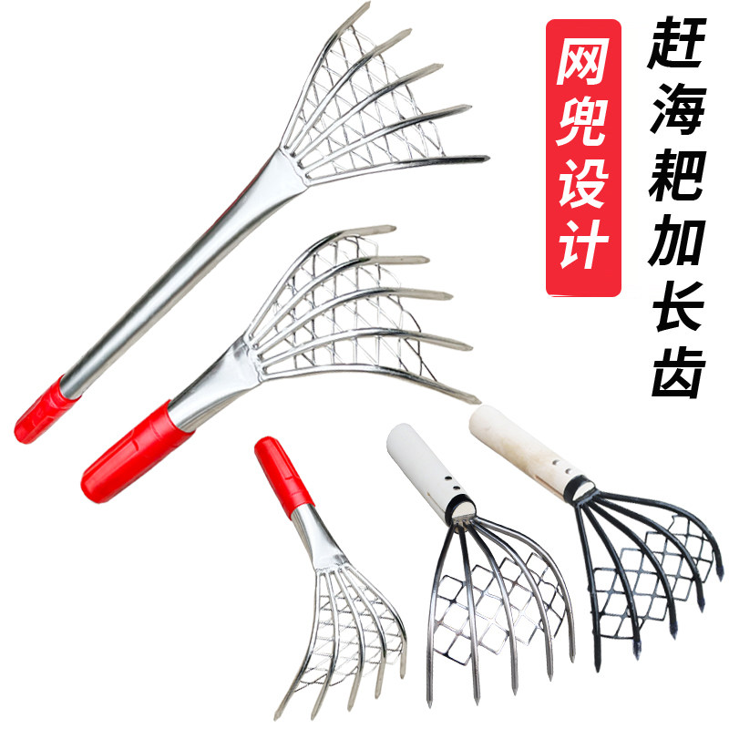 Грабки из нержавеющей стали, копающие моллюски и устричный артефакт на травяном море, чтобы поймать морские инструменты набор многофункциональных