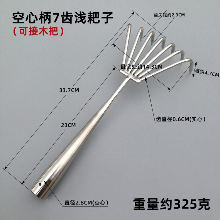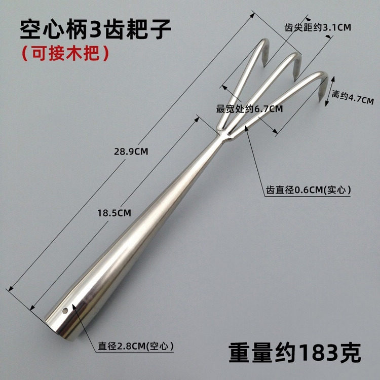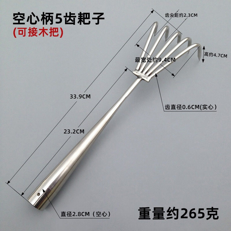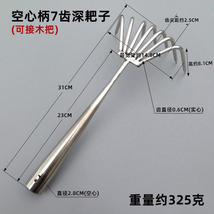 Полая ручка из нержавеющей стали может быть расширена с помощью длинных граблей, в общей сложности четыре стиля (три зуба, пять зубов, семь зубов, глубину семи зубов).