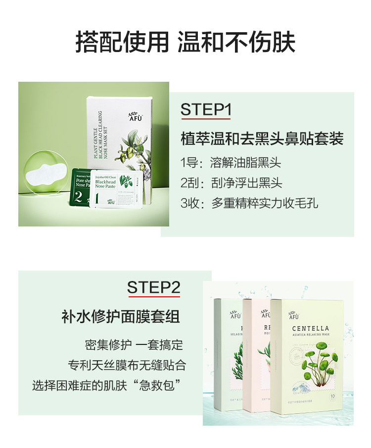 阿芙 Мягкие носовые полоски с экстрактом растений от черных точек, комплект, масло для ухода за кожей, сужает поры