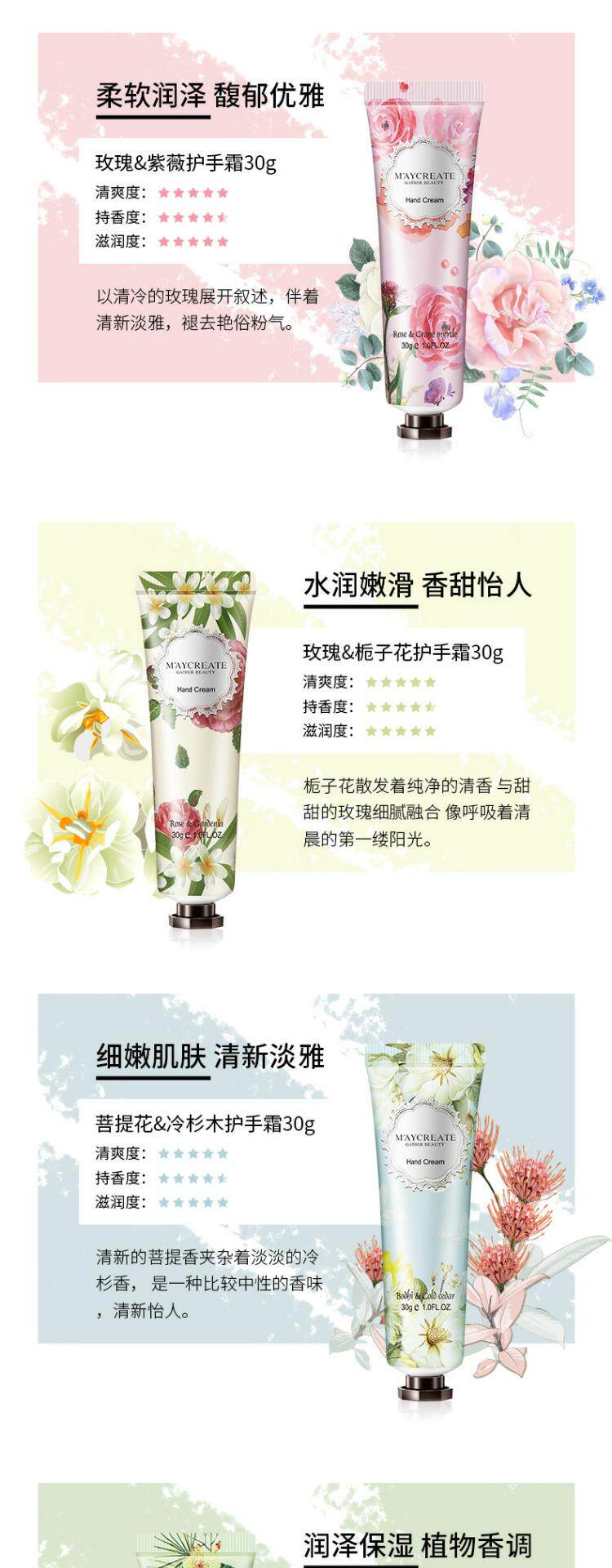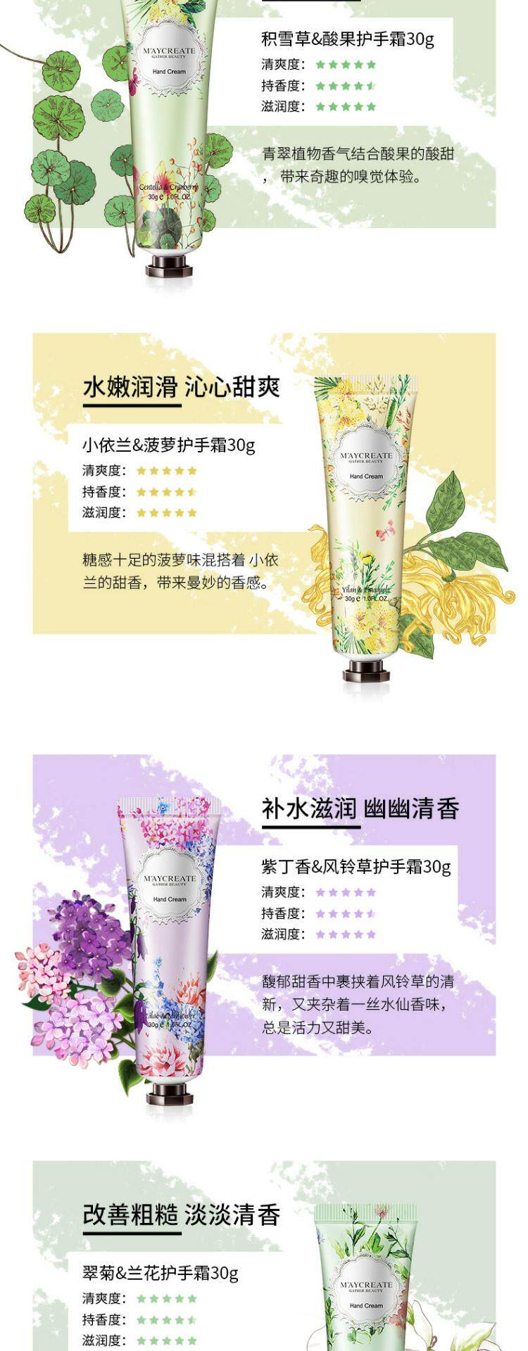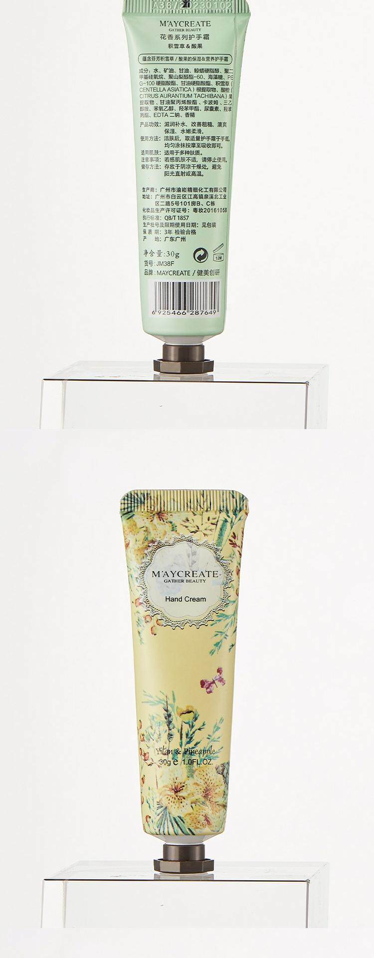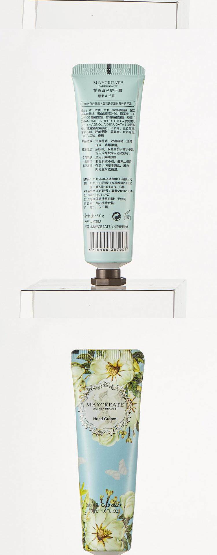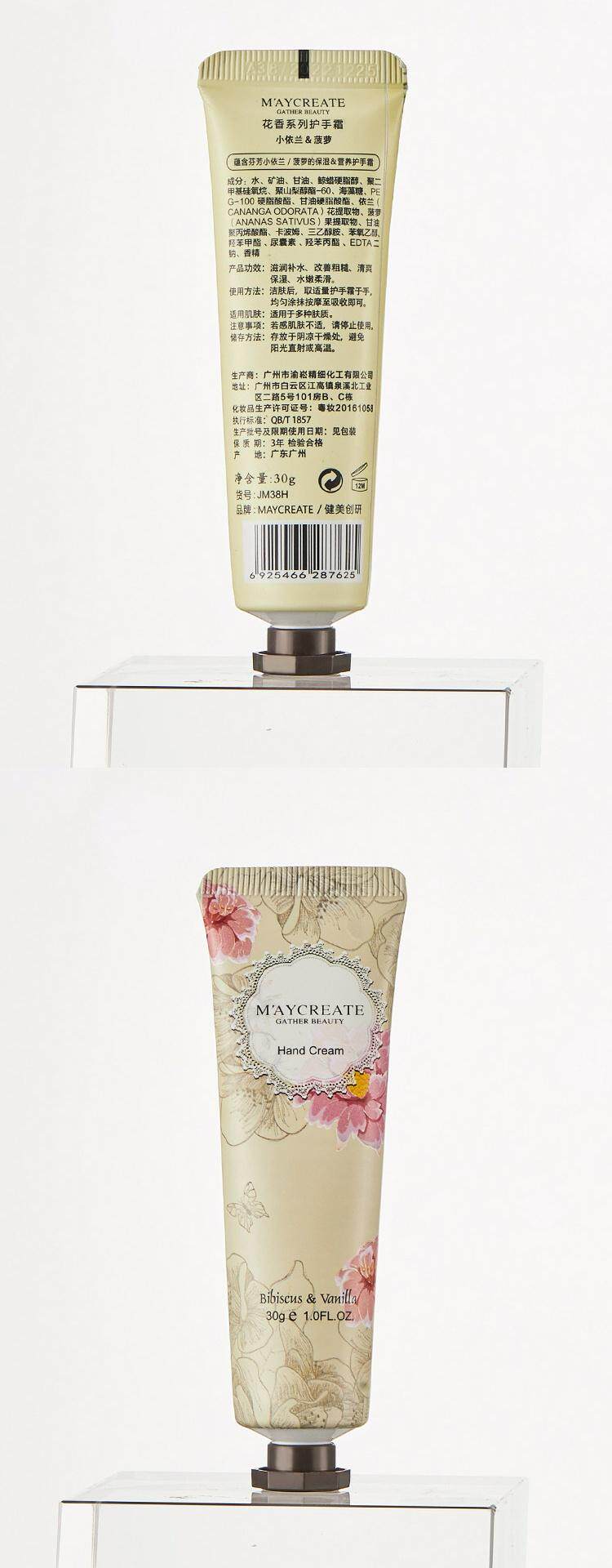 | Цвет: | Цветочный ладан-орхидея, Цветочный ладан-сад, Фиолетовый, Цветочный ладан-розовая лагерстроемия, Цветочный ладан-ананас, Цветочный аромат-кислотные плоды, Цветы-а., Цветочный аромат-ветровой колокол Cao, Цветочный ладан-ваниль, Цветочный ладан-пих, Десять различных ароматов крема рук |