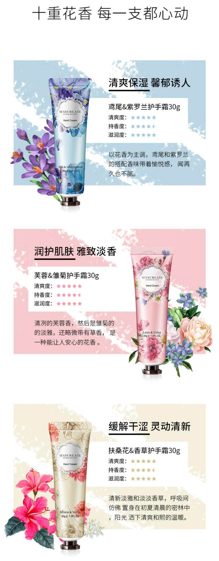 Цветочный парфюмированный крем для рук, демисезонная увлажняющая водостойкая защитная эссенция, 10 шт, против трещин