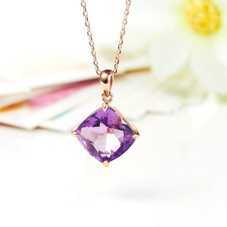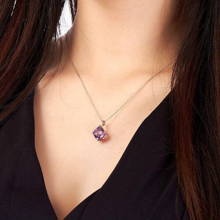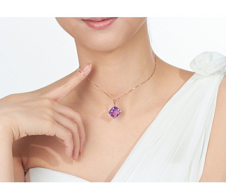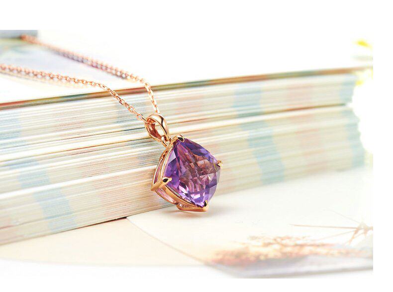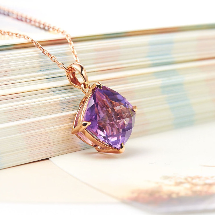Ювелирное украшение, натуральная подвеска из кварца с аметистом, ожерелье, 10 карат, 14 карат, с драгоценным камнем, женский стиль