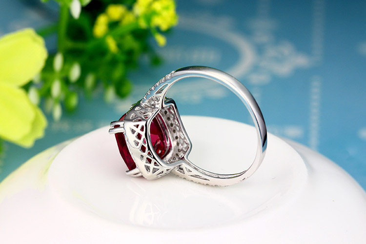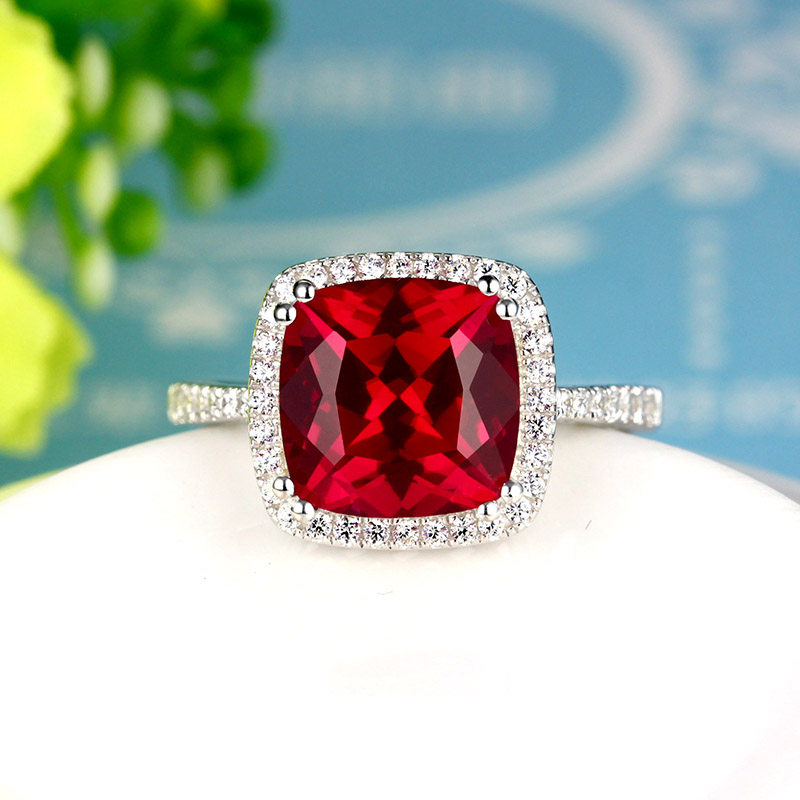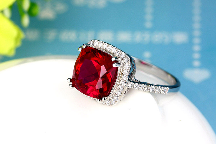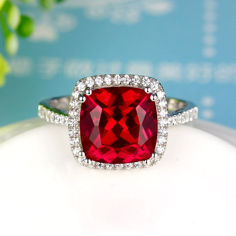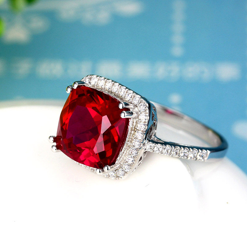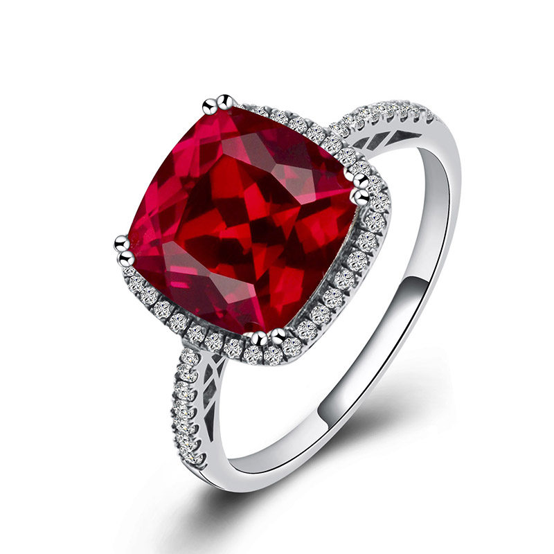 Рубиновое кольцо с камнем, квадратная инкрустация камня, платиновое ювелирное украшение, серебро 925 пробы, с драгоценным камнем, белое золото 18 карат, женский стиль