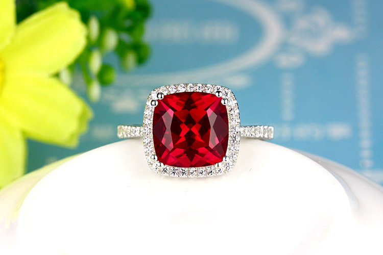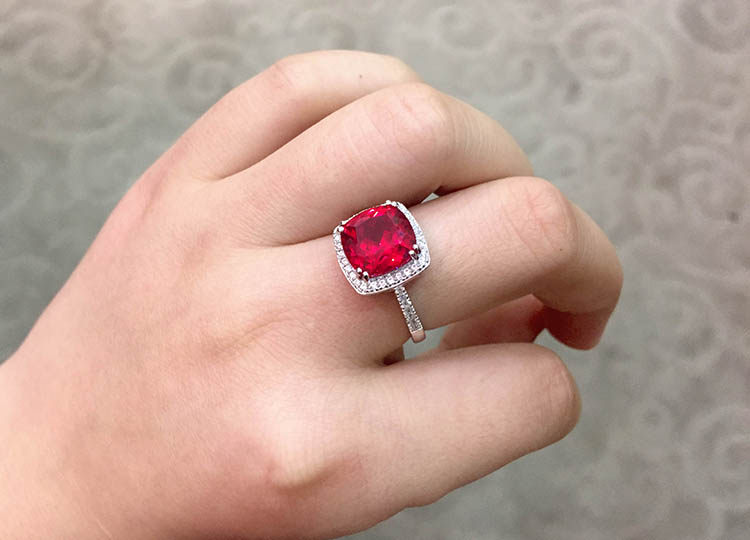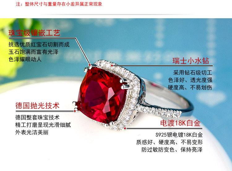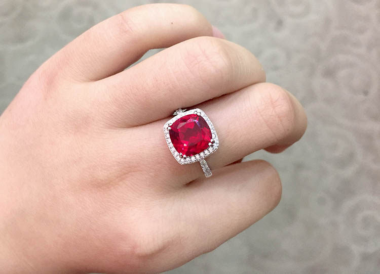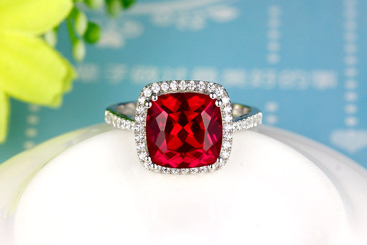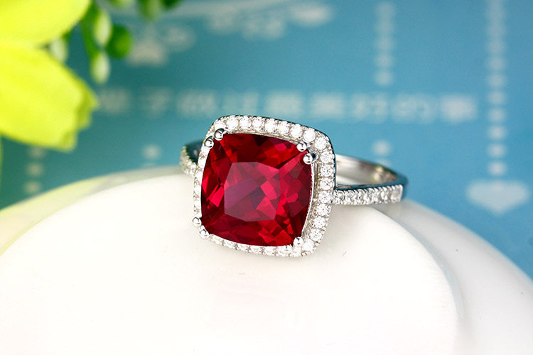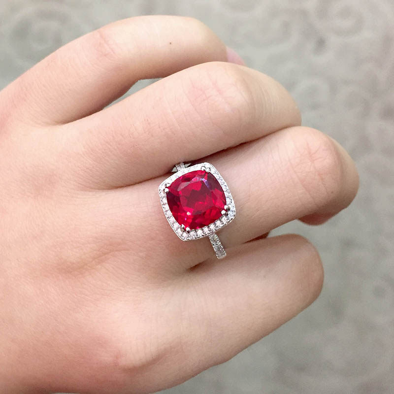 Рубиновое кольцо с камнем, квадратная инкрустация камня, платиновое ювелирное украшение, серебро 925 пробы, с драгоценным камнем, белое золото 18 карат, женский стиль