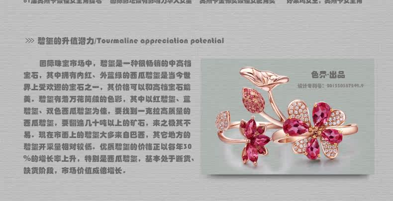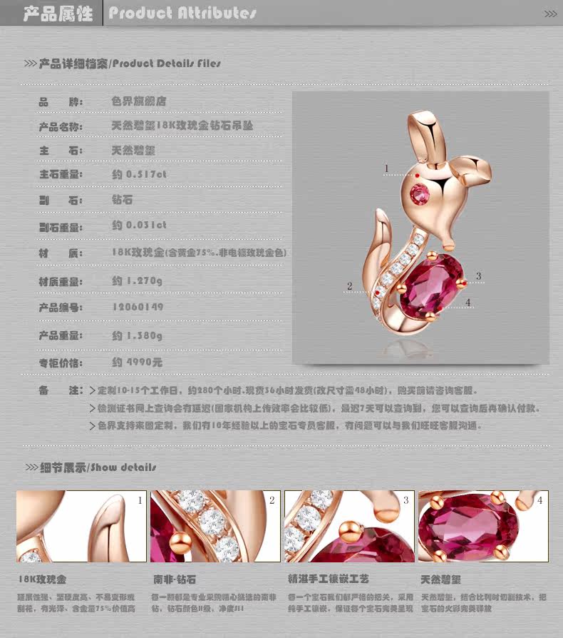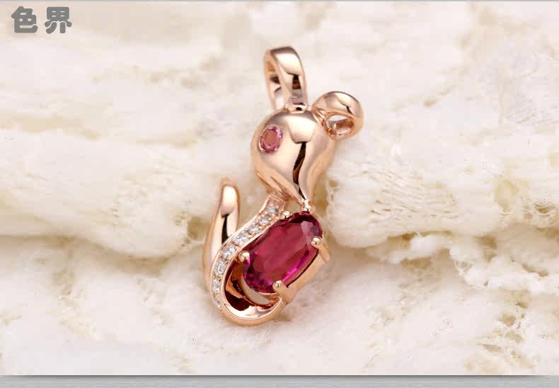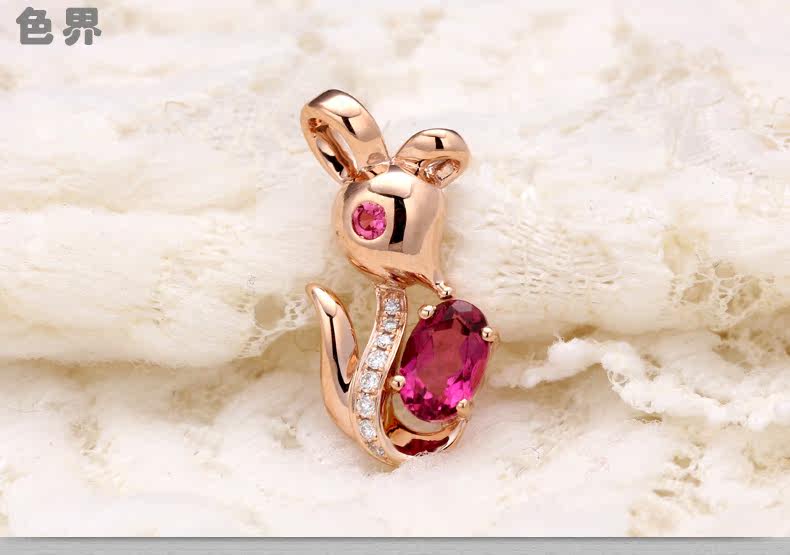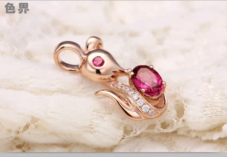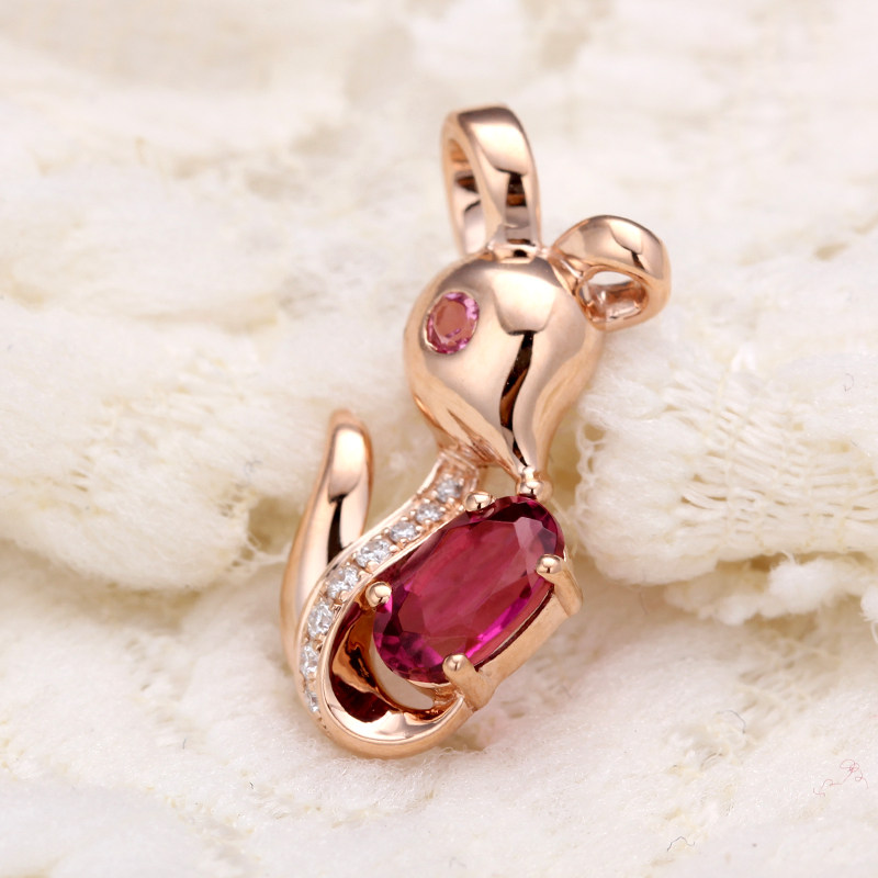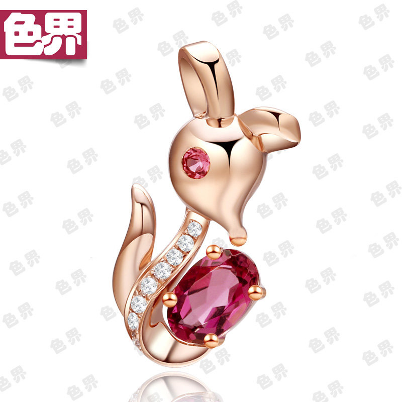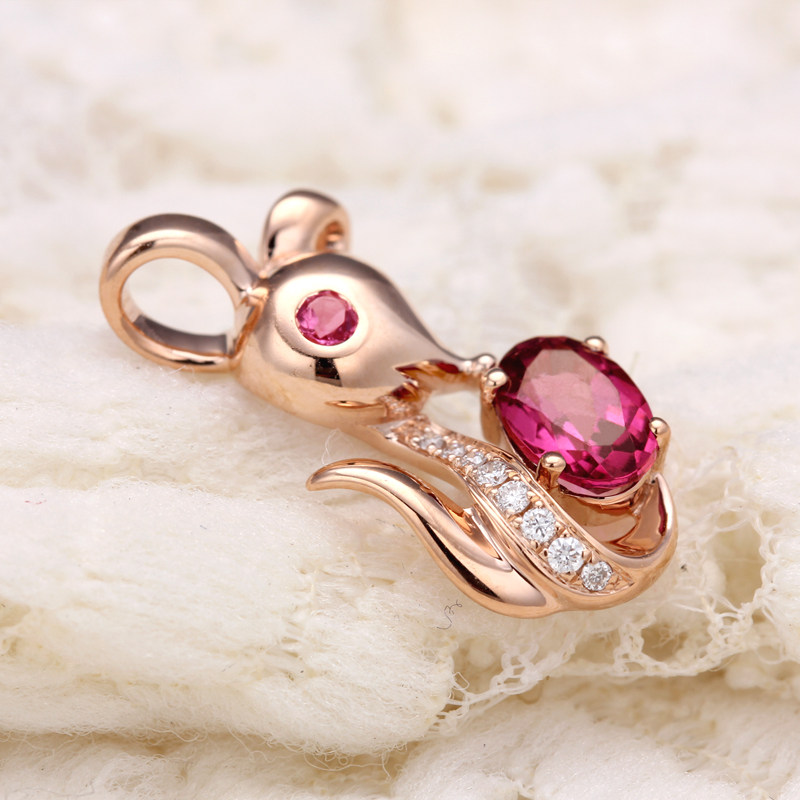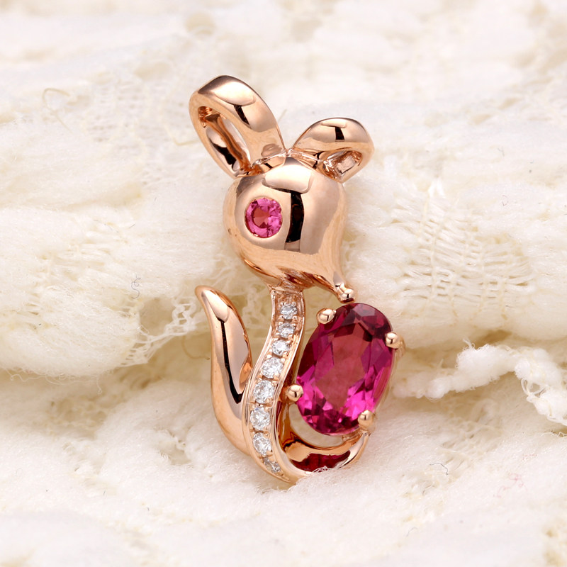 色界 Натуральная турмалиновая золотая бриллиантовая красная подвеска, 18 карат, розовое золото, с драгоценным камнем