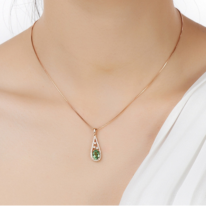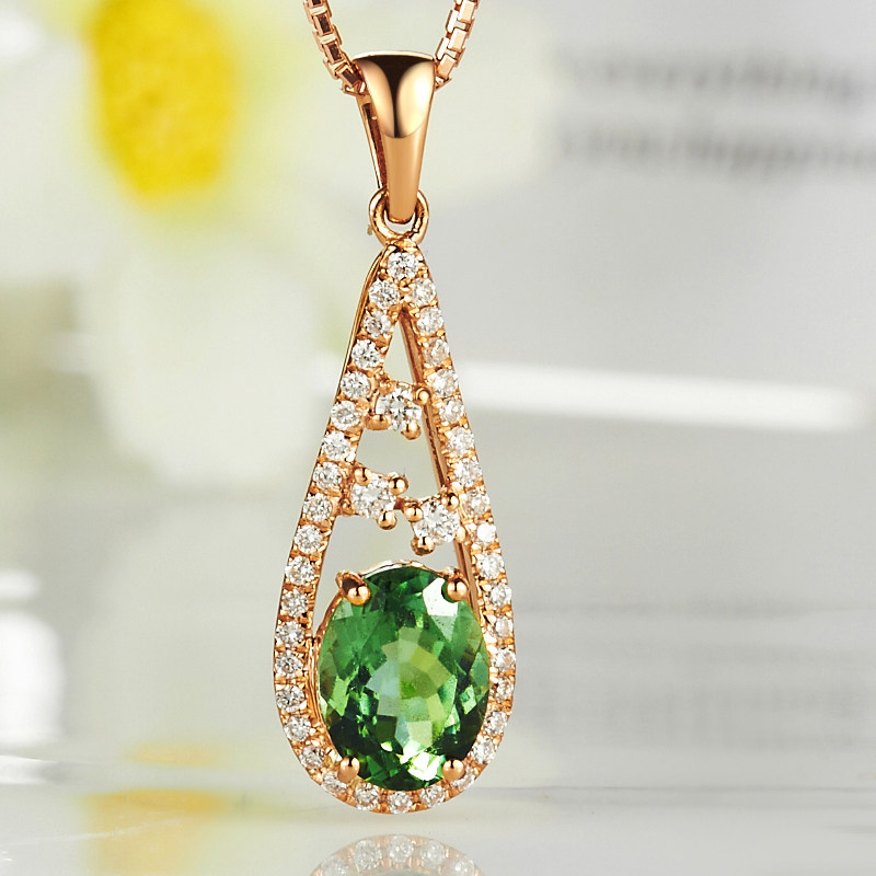 Турмалиновая золотая бриллиантовая натуральная подвеска, 1.15 карат, 18 карат, розовое золото