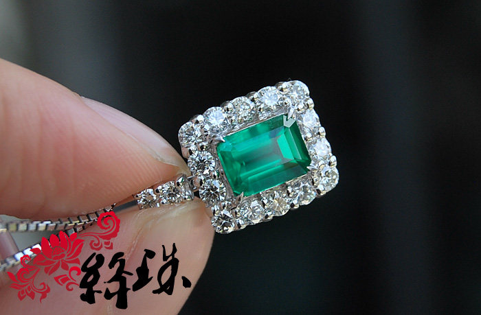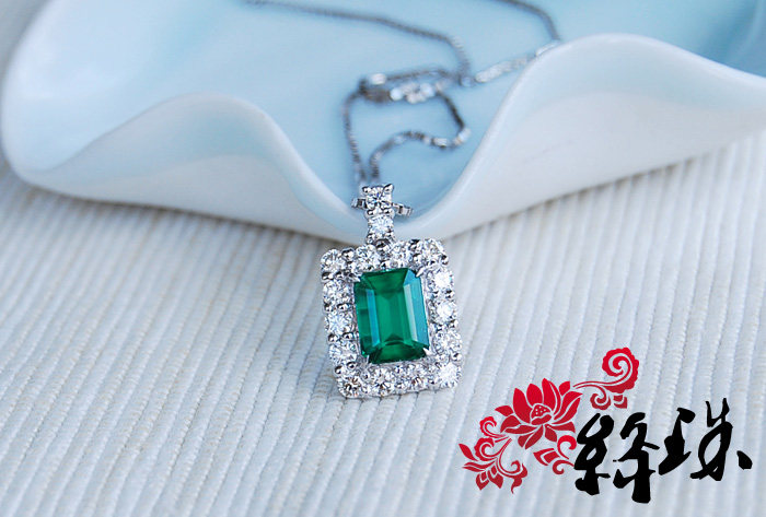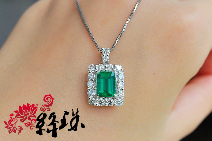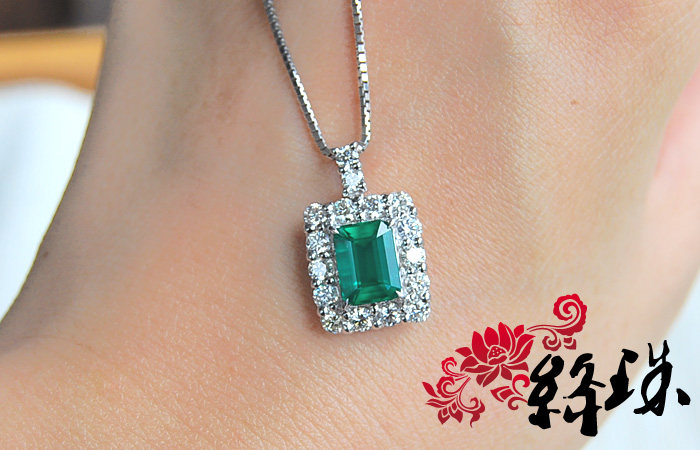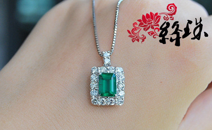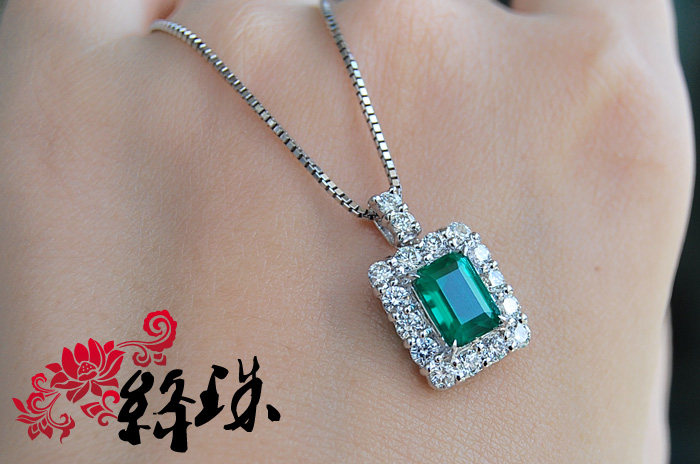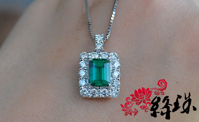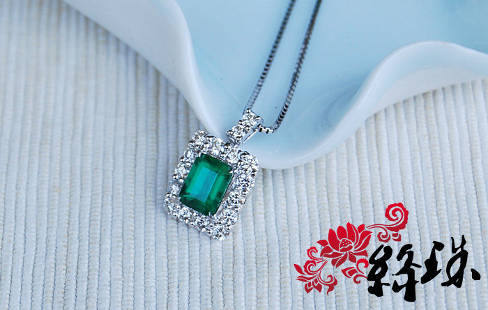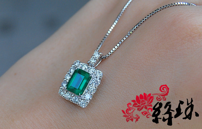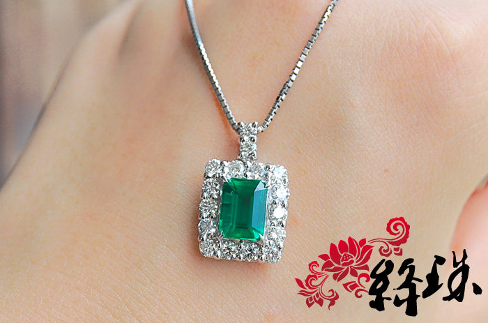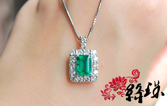 【Спецификация】Emerald 7,85 мм*5,86 мм*4,74 мм веса 1,61 карата, густой зеленый,Беспроютный ультрачистый корпус, весь корпус составляет 28 мм*11,6 мм после окружения алмаза, Super Flash White Diamond составляет 83 минуты, общий вес подвески по колье составляет 7,4 грамма, японский тонкий инкруста Ожерелье Pt850,С авторитетным сертификатом GIA (с происхождением)