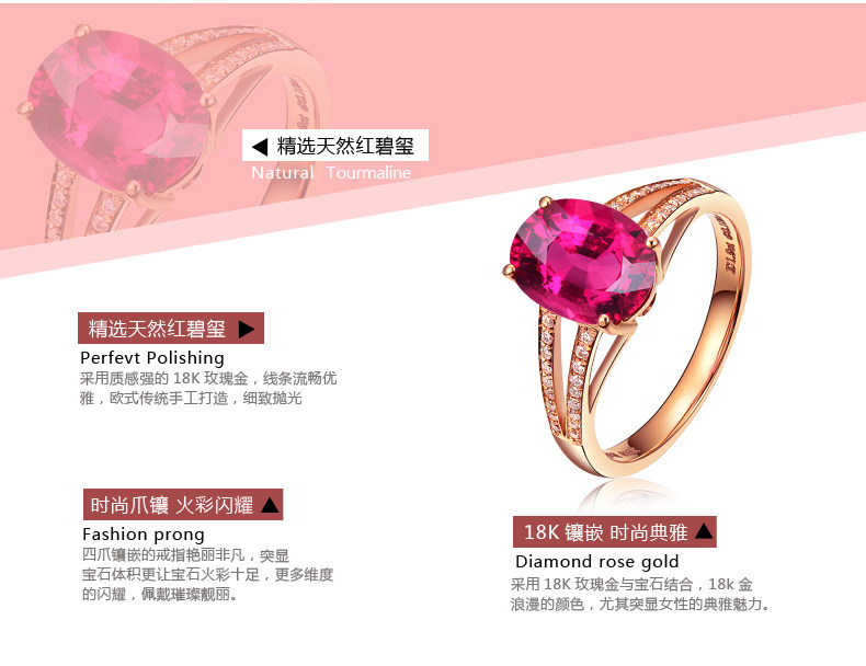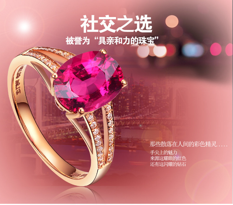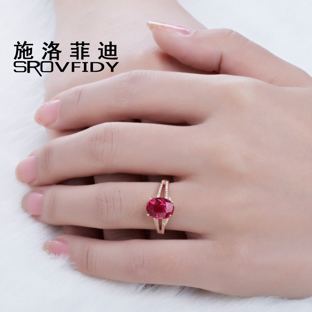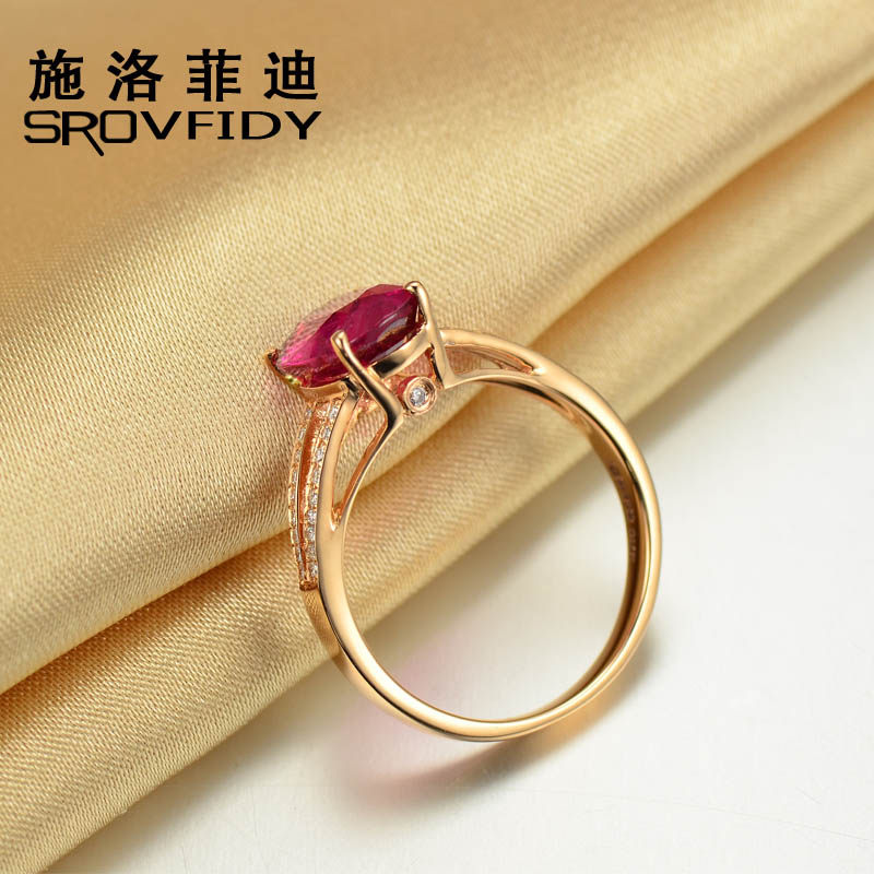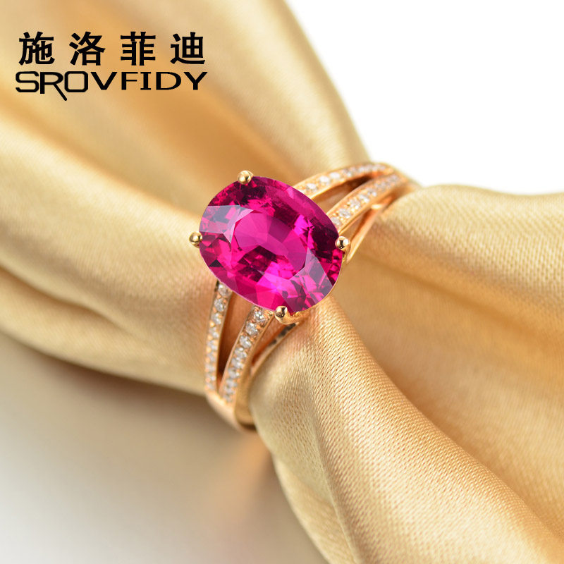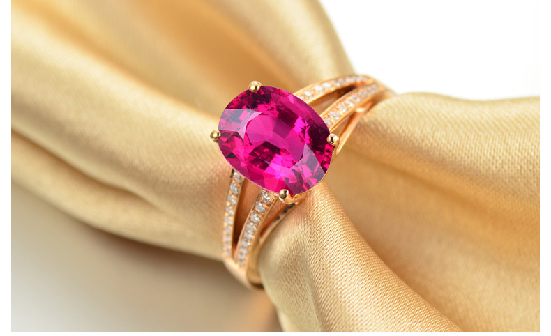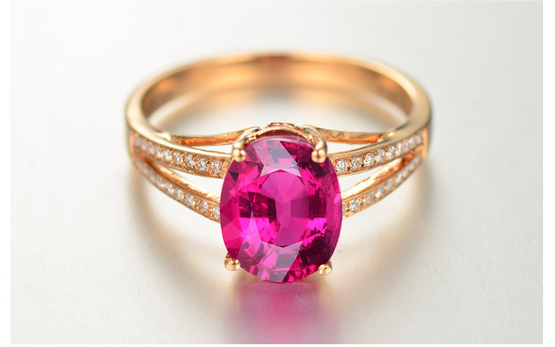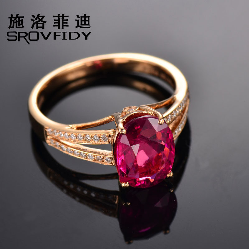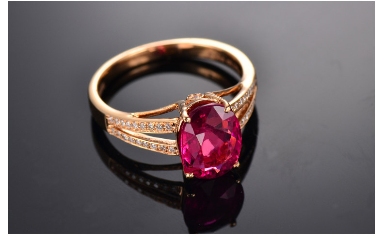 Золотое красное натуральное турмалиновое кольцо с камнем, 1.9 карат, 18 карат, розовое золото, с драгоценным камнем, женский стиль
