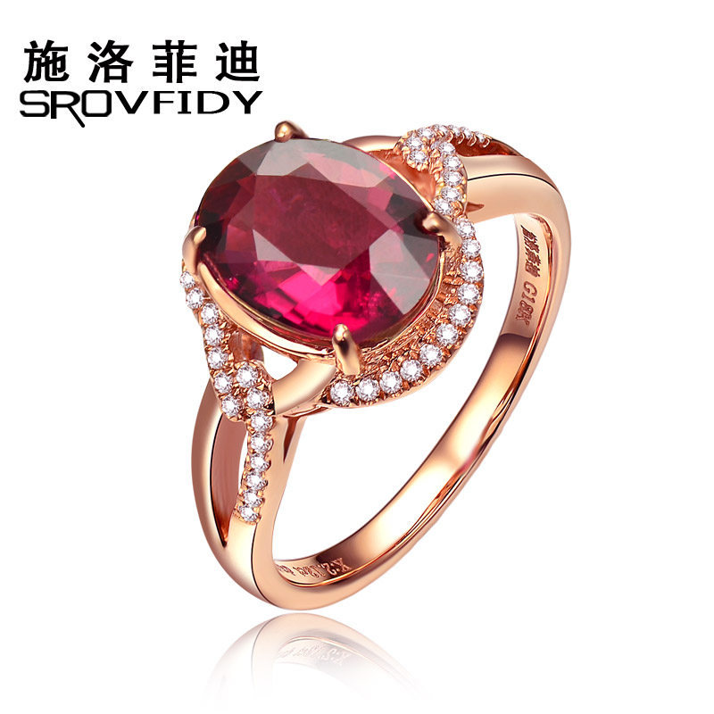 Золотое бриллиантовое натуральное турмалиновое кольцо, ювелирное украшение, 18 карат, розовое золото, с драгоценным камнем