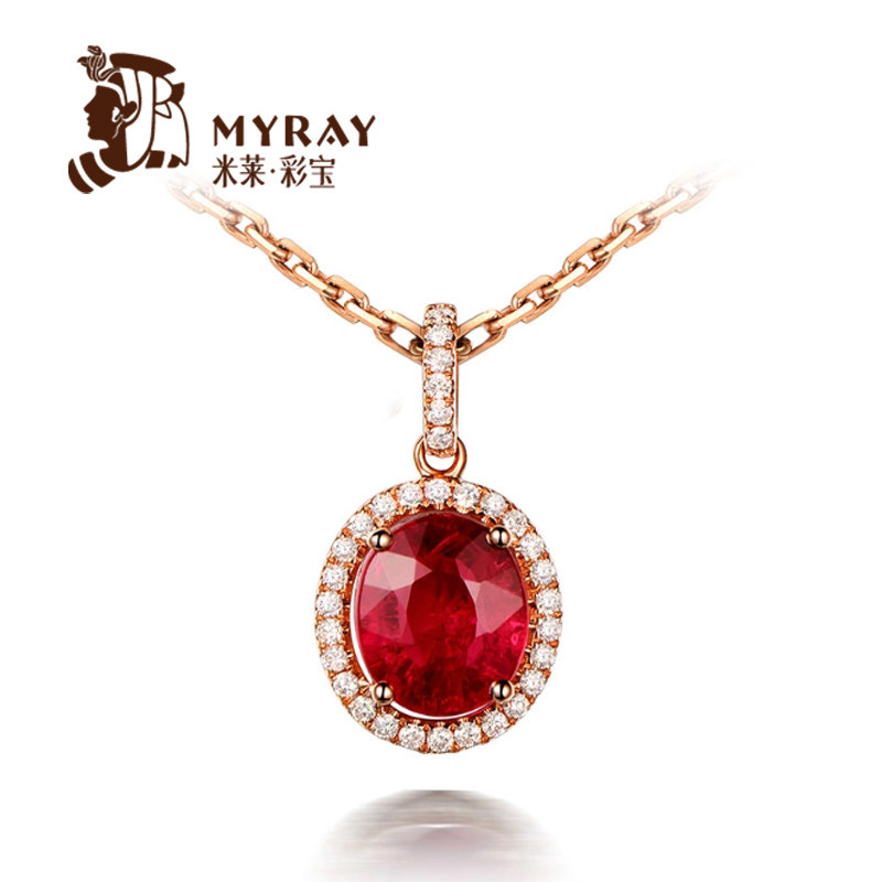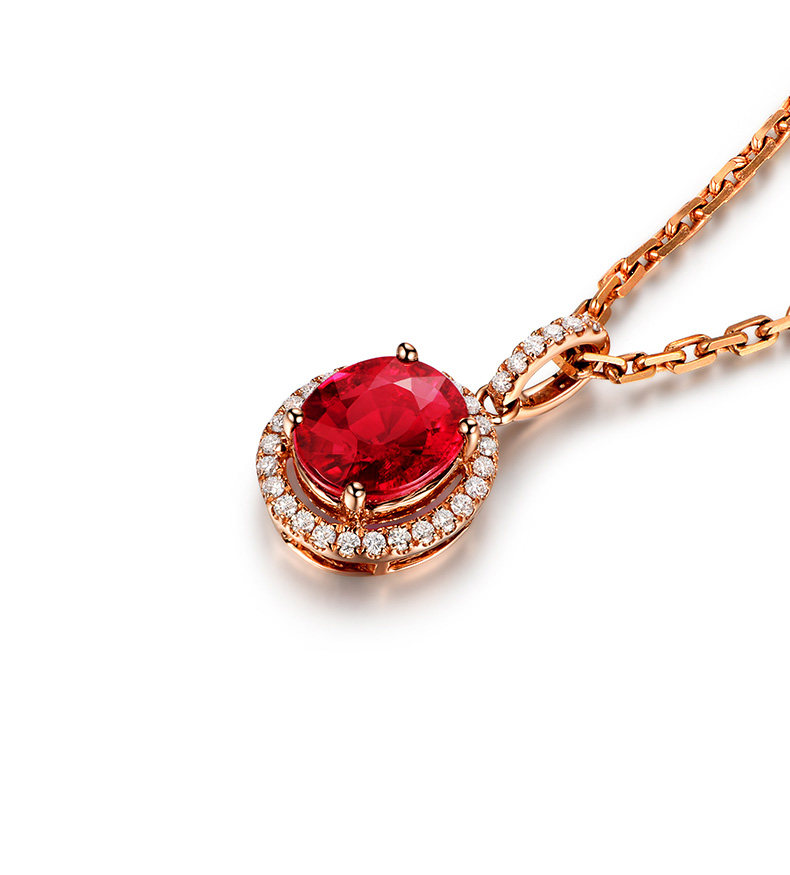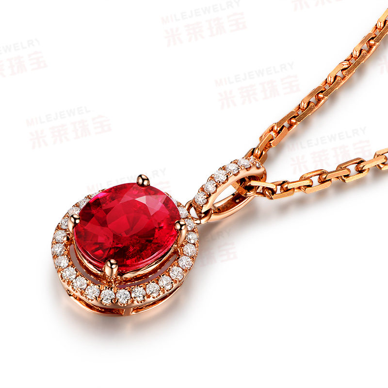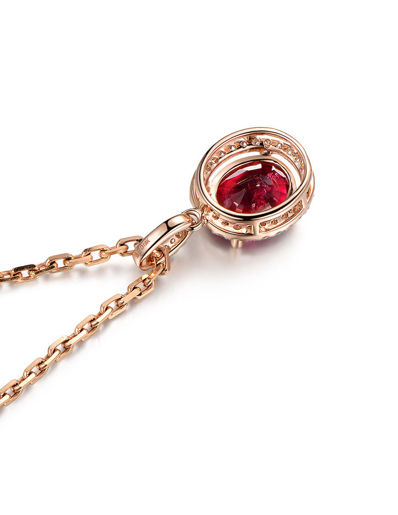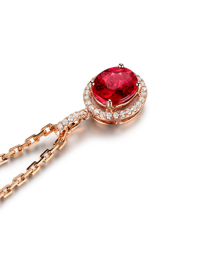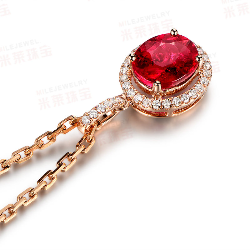 米莱 Ювелирное украшение, натуральное турмалиновое ожерелье, золотая бриллиантовая инкрустация камня, подвеска, 2.06 карат, 18 карат, розовое золото
