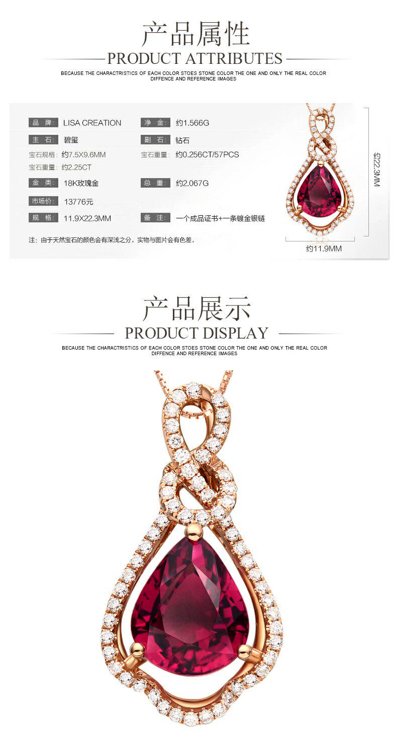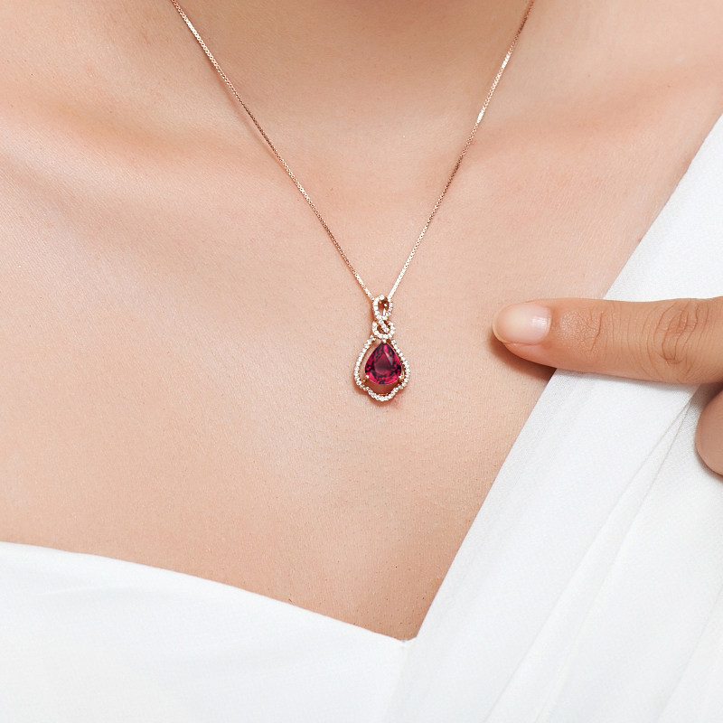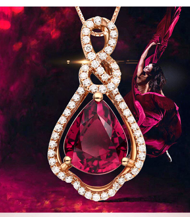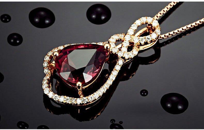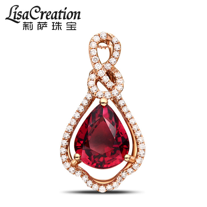 Ювелирное украшение, натуральная турмалиновая золотая бриллиантовая подвеска, 2.15 карат, 18 карат, розовое золото