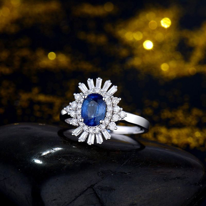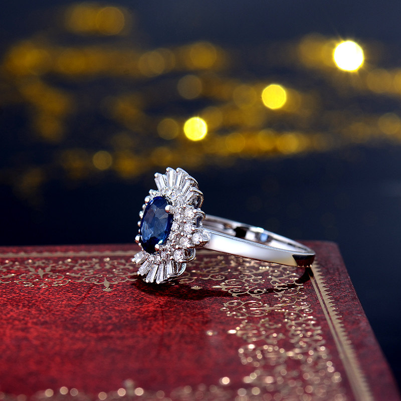 Сапфировое ювелирное украшение из нефрита, бриллиантовое кольцо, 1 карат, 40, золото 750 пробы