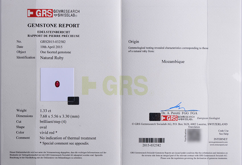 楼上楼 GRS 1,33CT Mozambique без жареных голубных крови -овальная рубиновая лапша лапша 2582