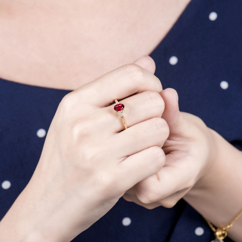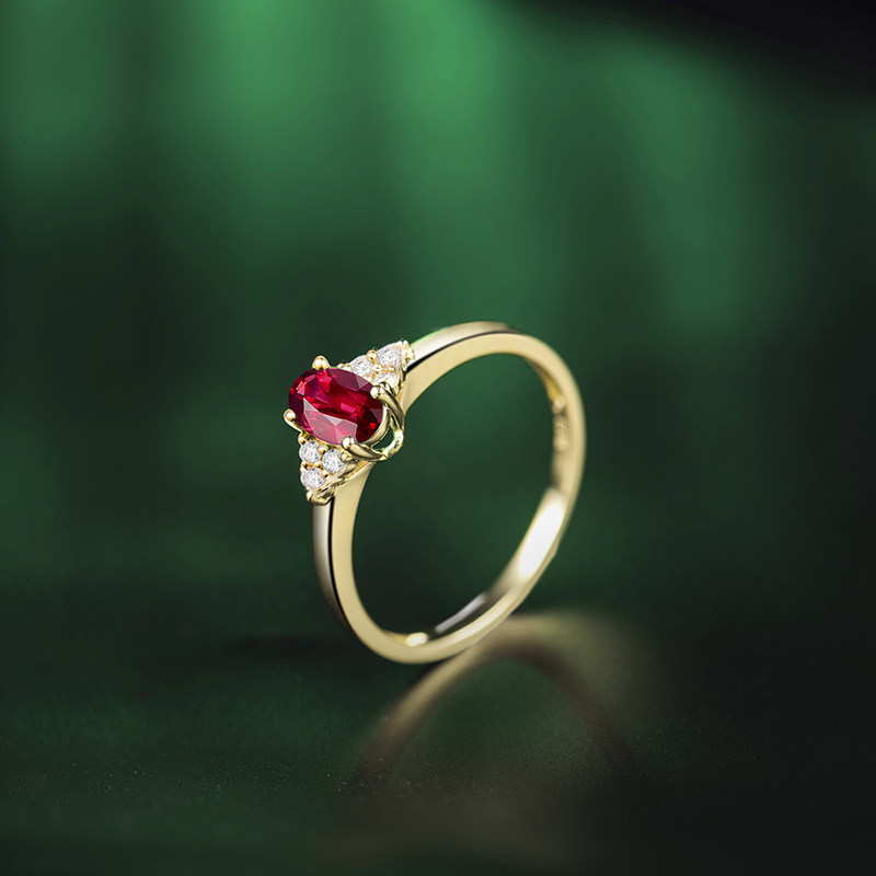 Ювелирное украшение, рубиновое бриллиантовое кольцо с камнем из Мьянмы, 0.5 карат, золото 18 карат, с драгоценным камнем