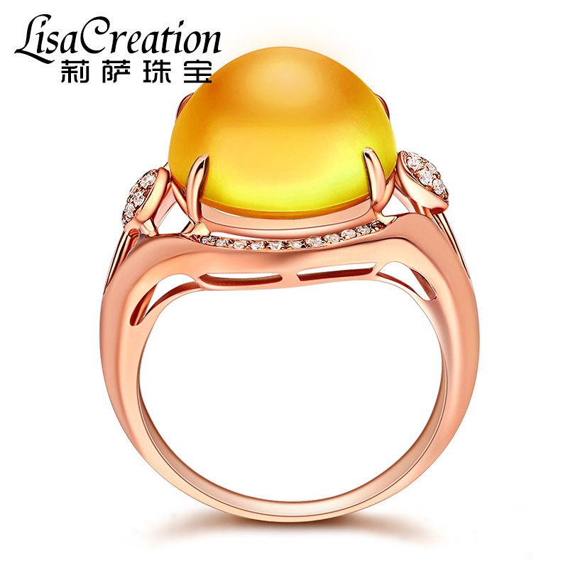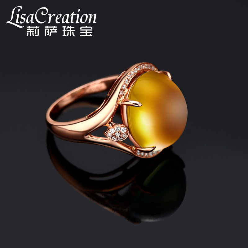 Золотое натуральное кольцо с кварцем, золотая бриллиантовая инкрустация камня, 9.2 карат, 18 карат, розовое золото, с драгоценным камнем