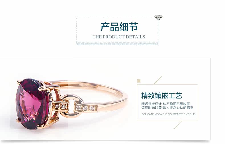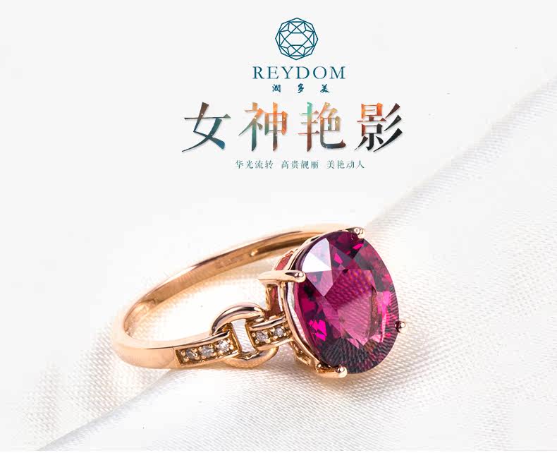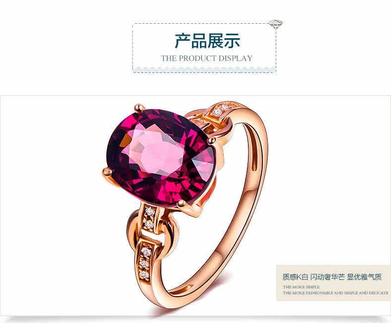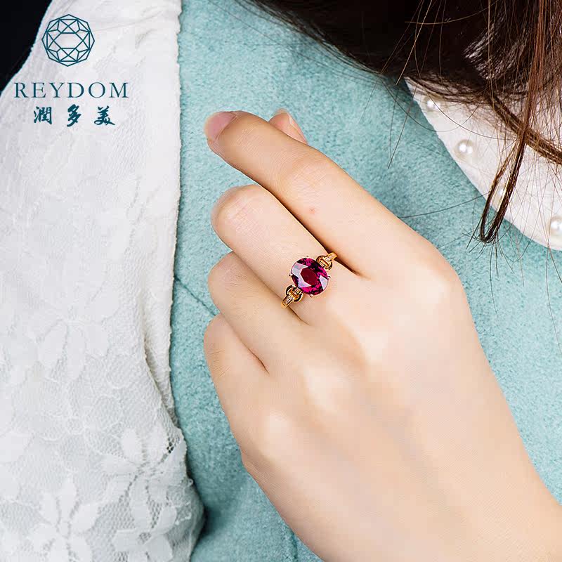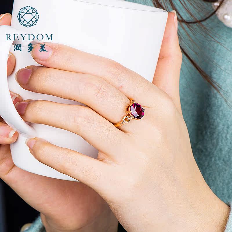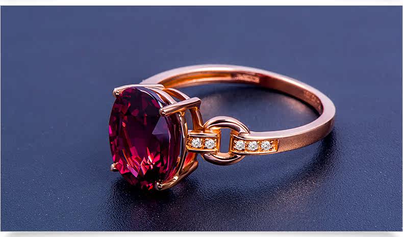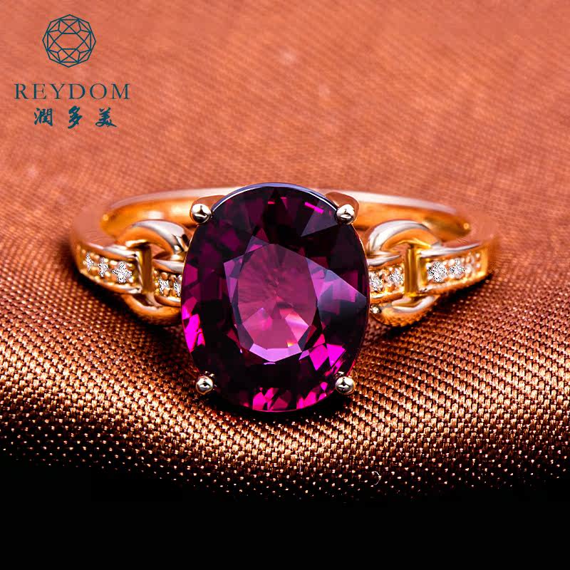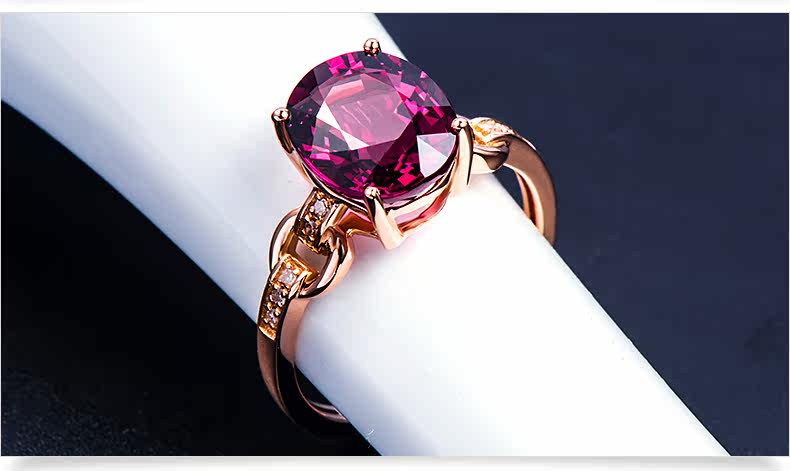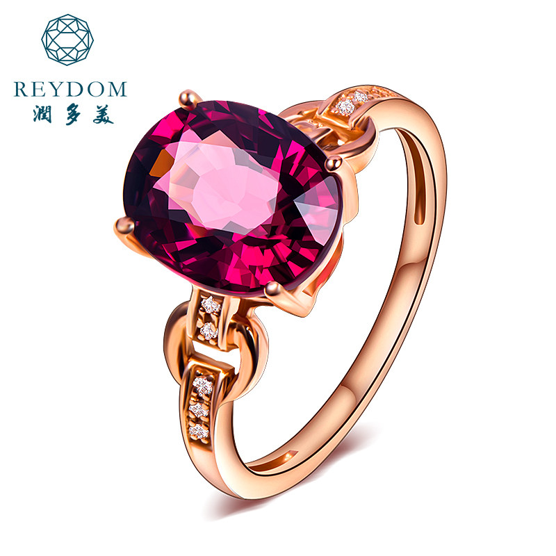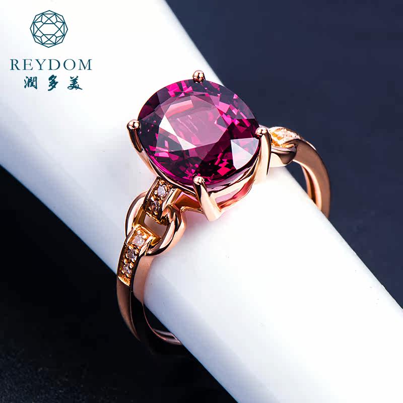 润多美 Кольцо с камнем из Мозамбика из граната, золотое обручальное кольцо, 3.37 карат, 18 карат, розовое золото, с драгоценным камнем