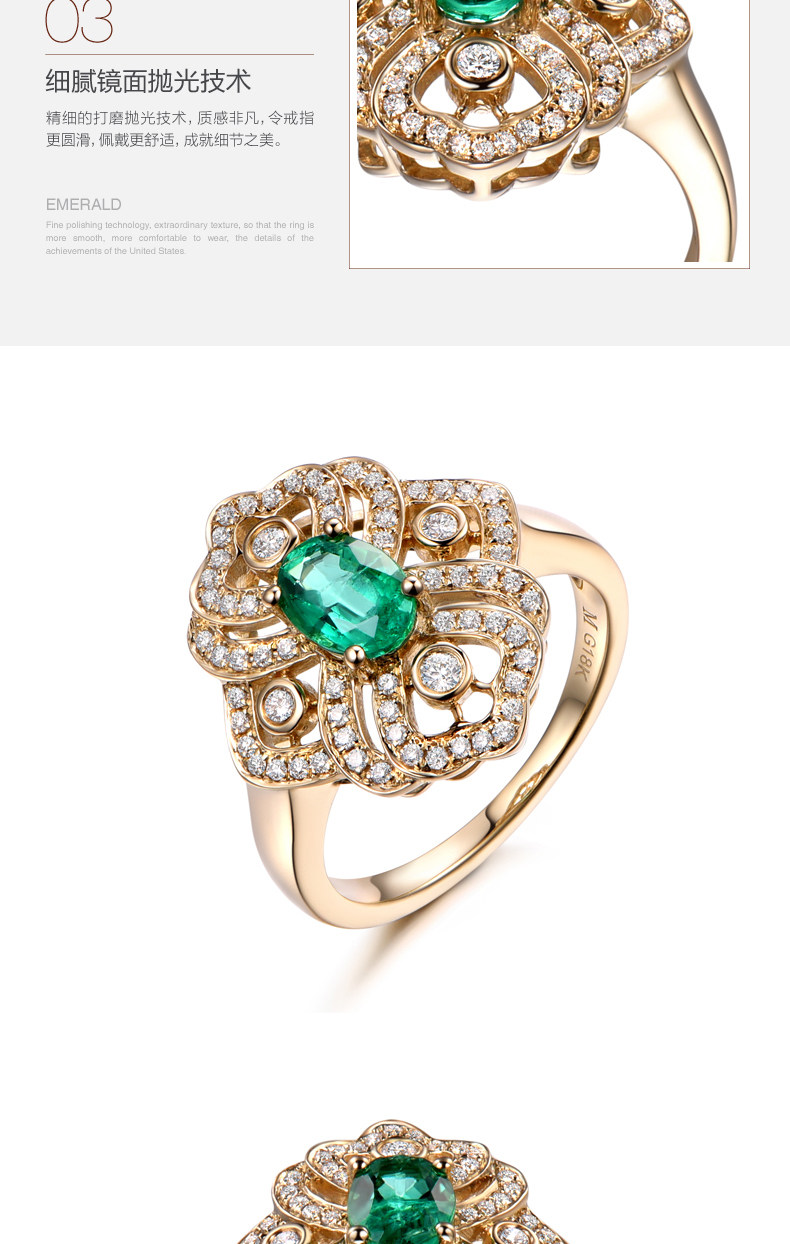 米莱 Ювелирное украшение, кольцо изумруд, 0.78 карат, золото 750 пробы, с драгоценным камнем, делается под заказ