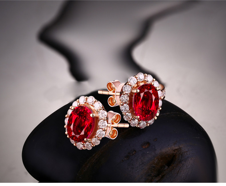 Натуральные рубиновые серьги из Мьянмы, бриллиантовое ювелирное украшение, 2 карат, золото 750 пробы, с драгоценным камнем