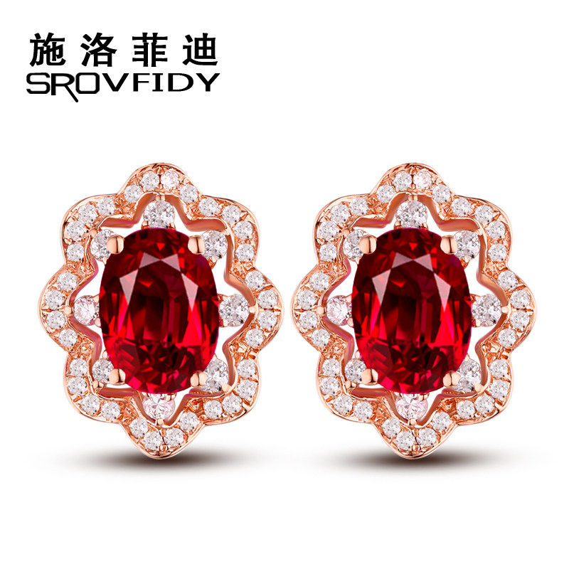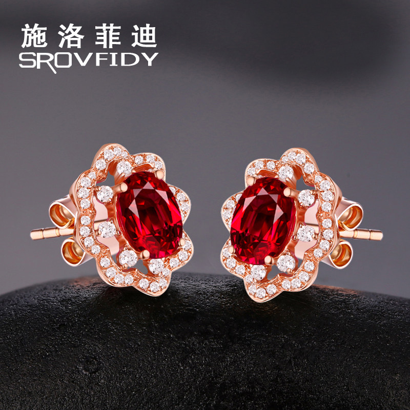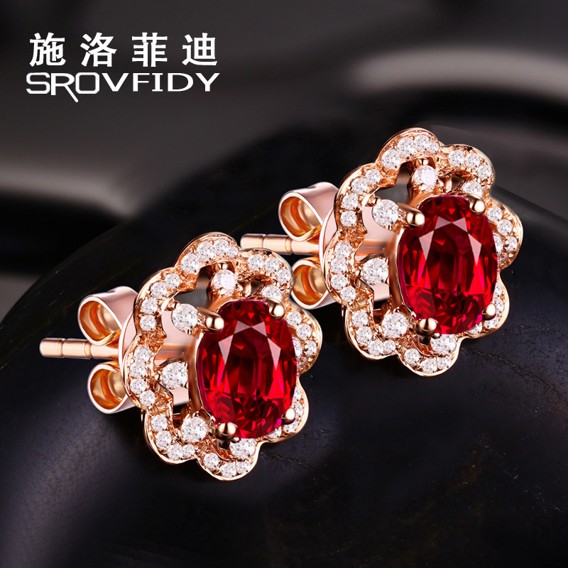 Натуральные рубиновые серьги, 2 карат, золото 750 пробы, с драгоценным камнем