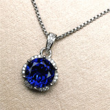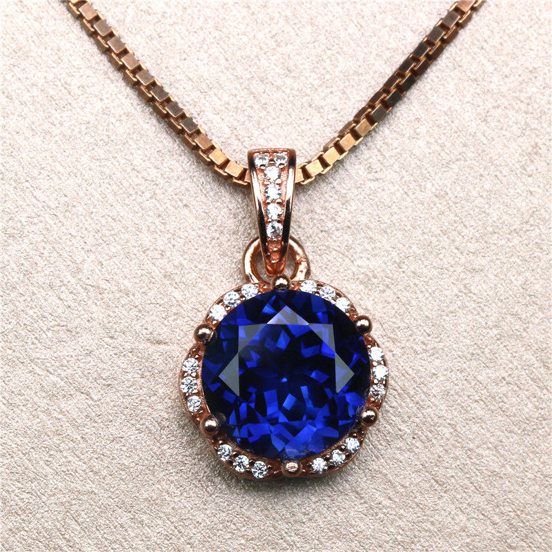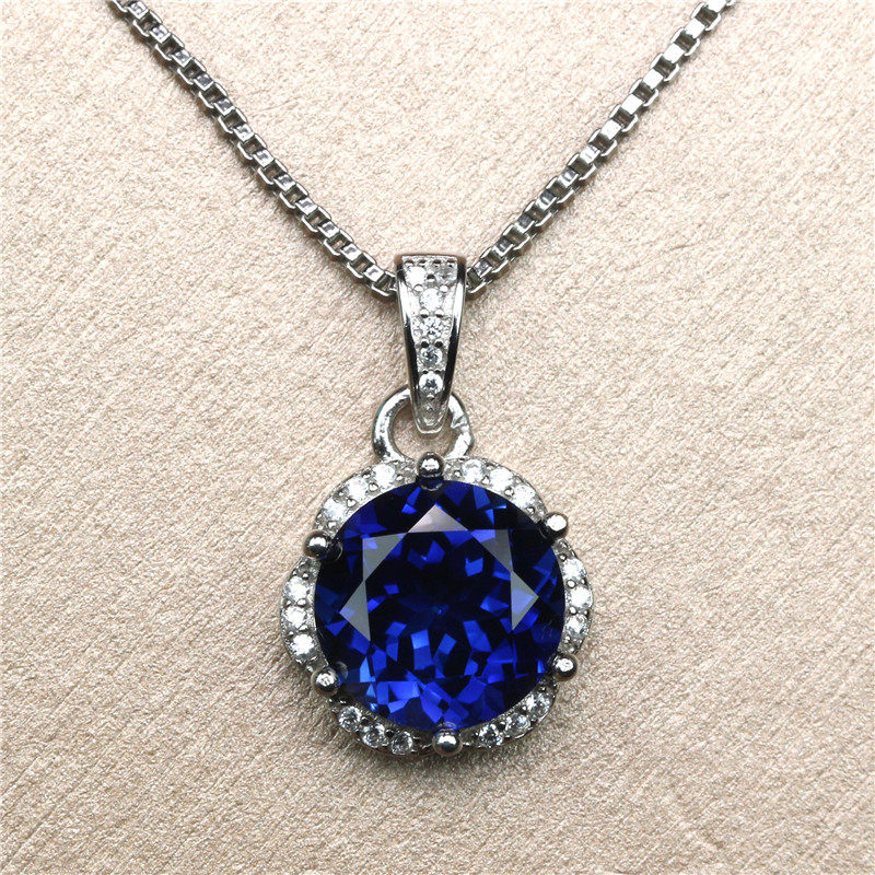 Ожерелье, сапфировая подвеска, в корейском стиле, женский стиль, серебро 925 пробы, японские и корейские, с драгоценным камнем, подарок на день рождения