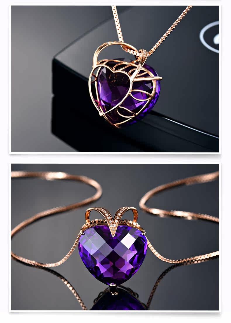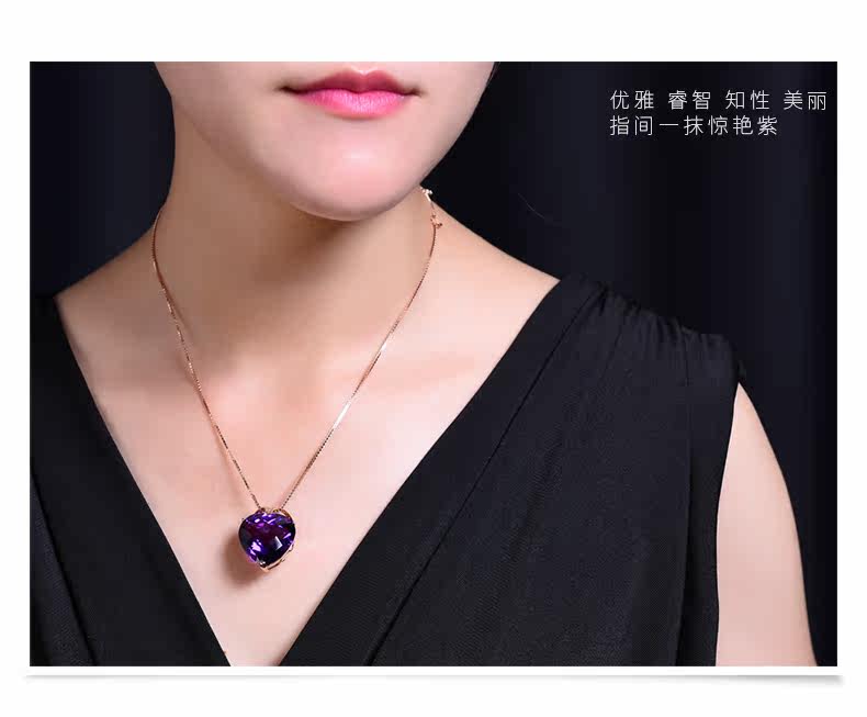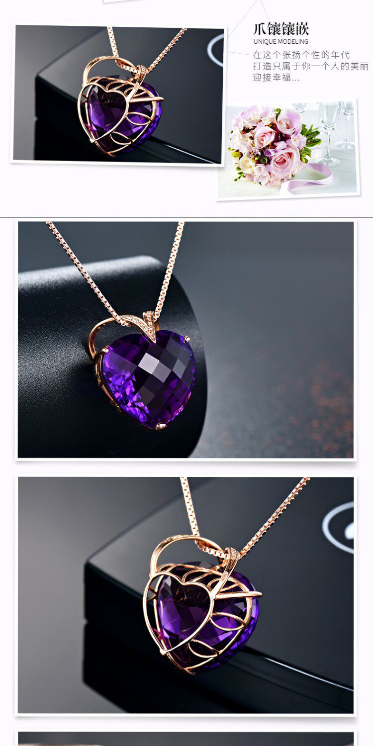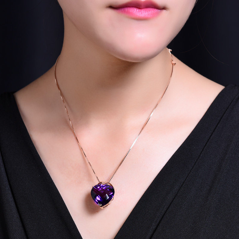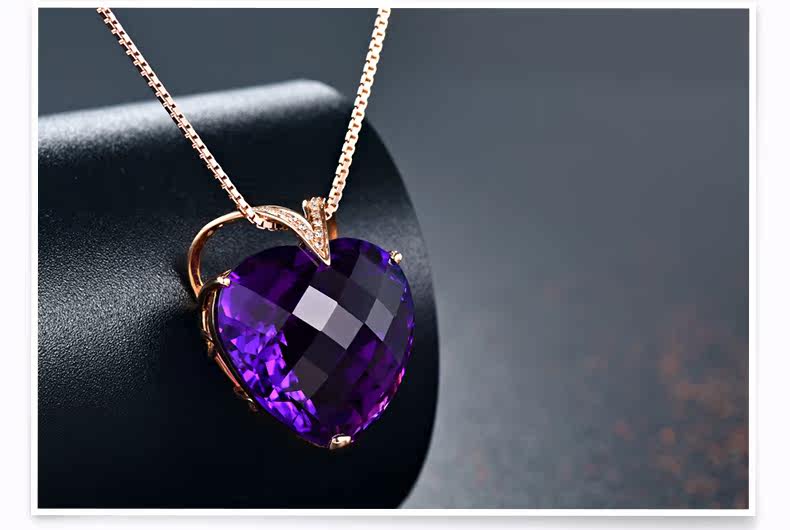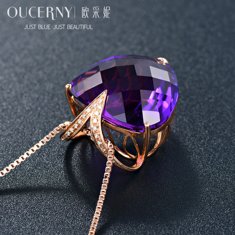 Натуральная подвеска из кварца с аметистом, золотая инкрустация камня, 18 карат, розовое золото, с драгоценным камнем, женский стиль